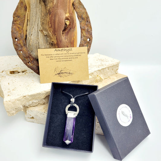 Necklaces Copper wire wrapped with natural Amethyst stone pendant
