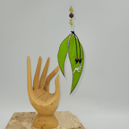 Hanging Stained Glass Gumleaf Kangaroo charm.