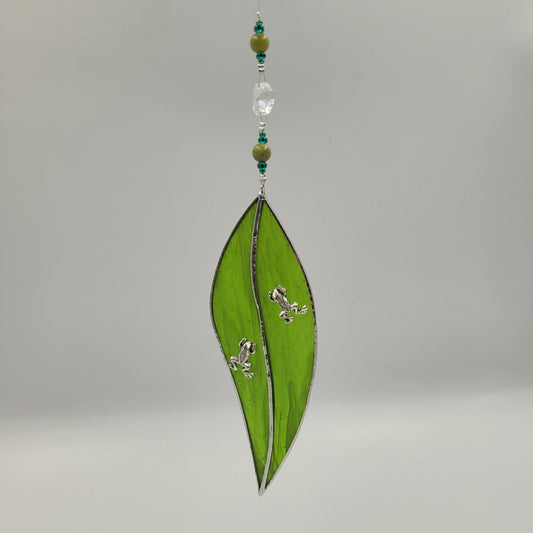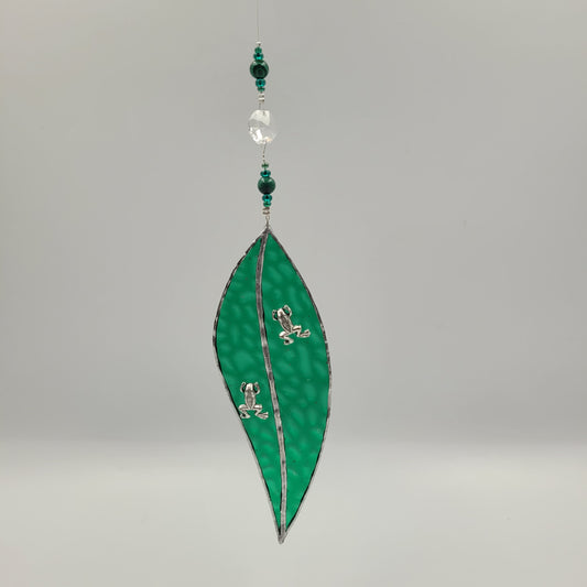 Hanging Stained Glass Small Leaf Dark Green / Frog