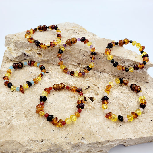 Amber Kids Bracelets/ Anklets (with Obsidian stone)