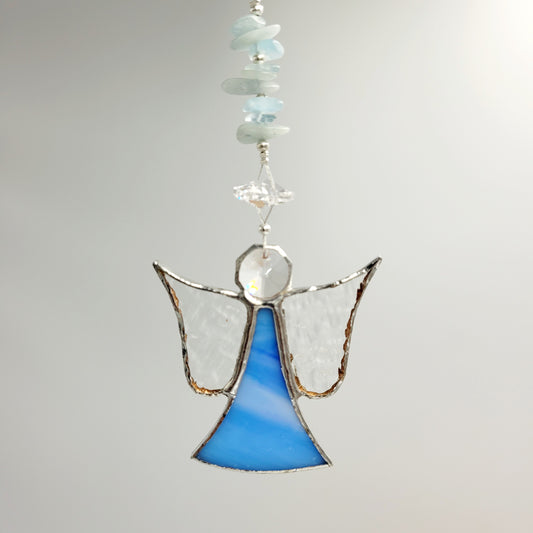 Hanging Angel Stained Glass Light Blue/ Aquamarine