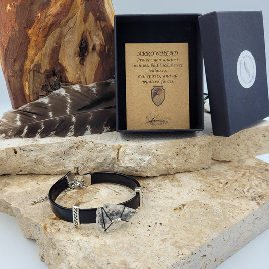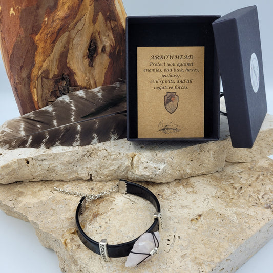Clear Quartz Leather Arrowhead Bracelet