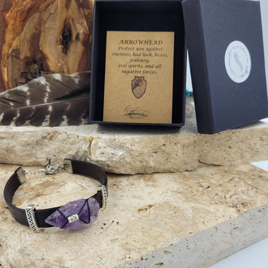 Amethyst Leather Arrowhead Bracelet