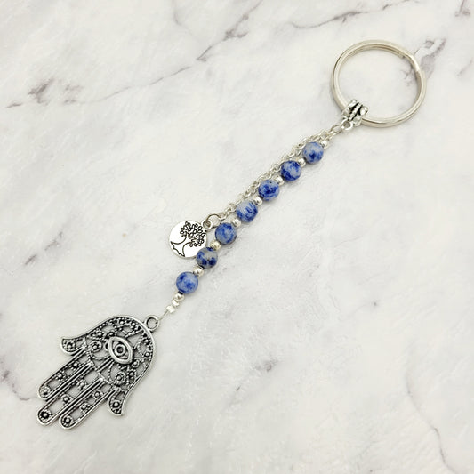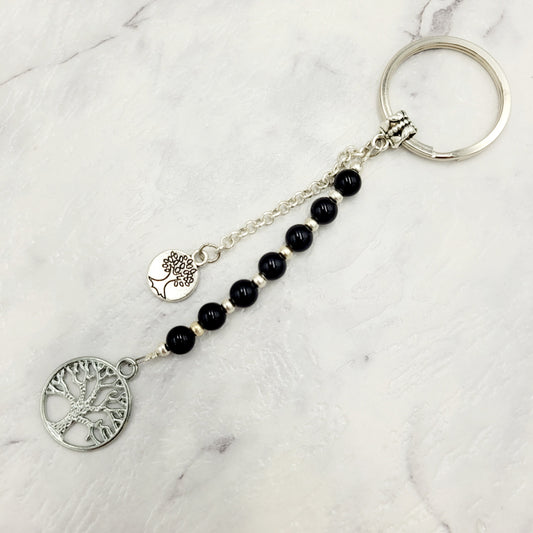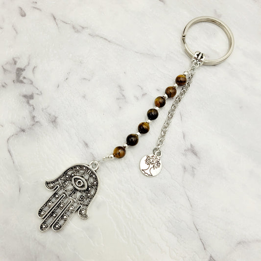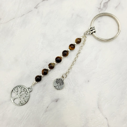 Tiger Eye Tree of Life Crystal Charm Keyring