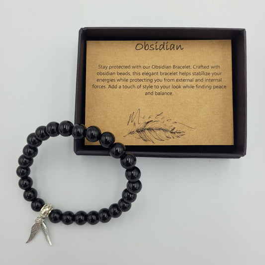 Bracelet Obsidian 8mm Wings