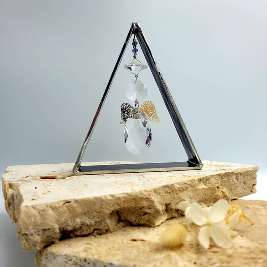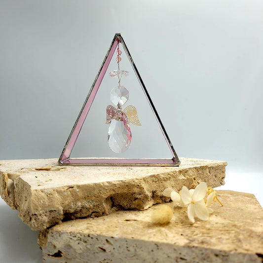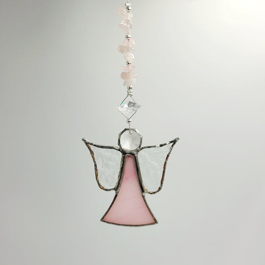 Hanging Angel Stained Glass Pink/ Rose Quartz