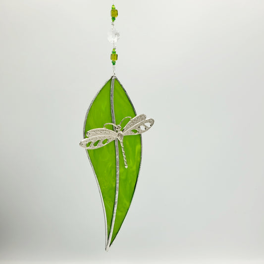 Hanging Stained Glass Small Leaf Light Green / Dragonfly