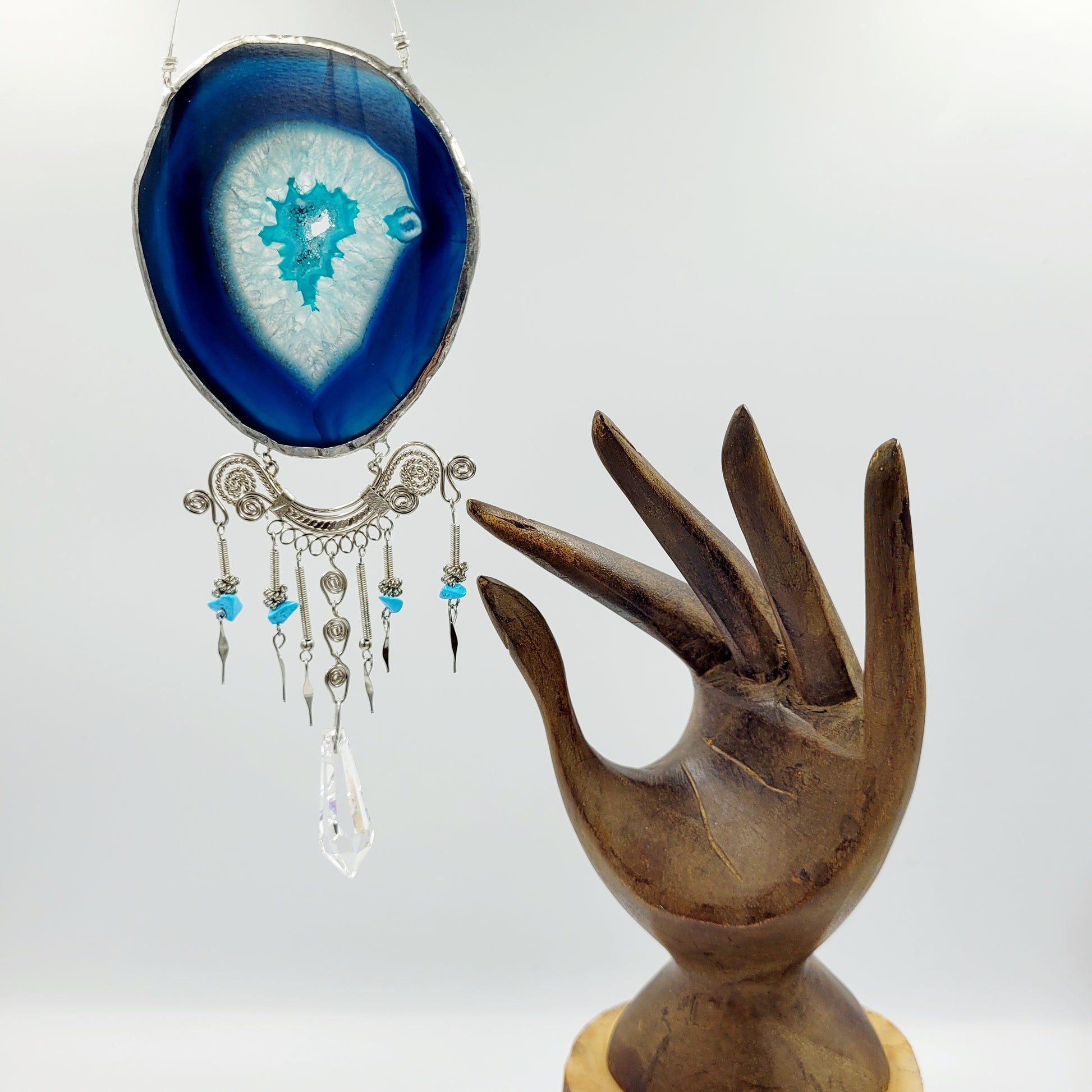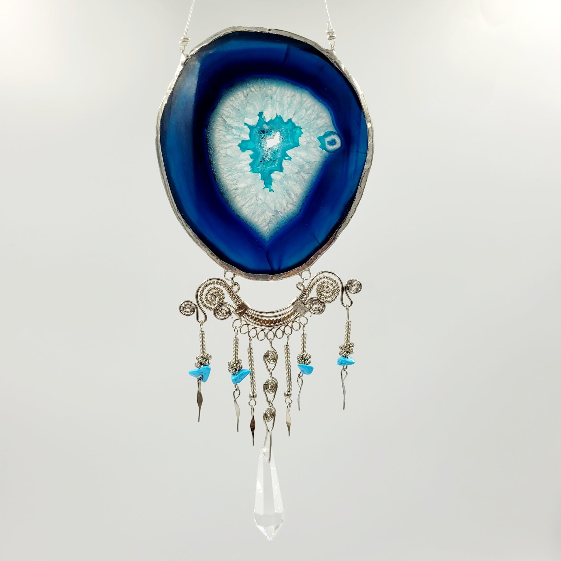 This beautiful Agate slice Hanging Crystal will brighten up any space. It contains Agate, which is known to enhance metal function, improve concentration and perception, and increase analytical abilities. Bring positive energy into your home with this stunning natural stone decoration.
