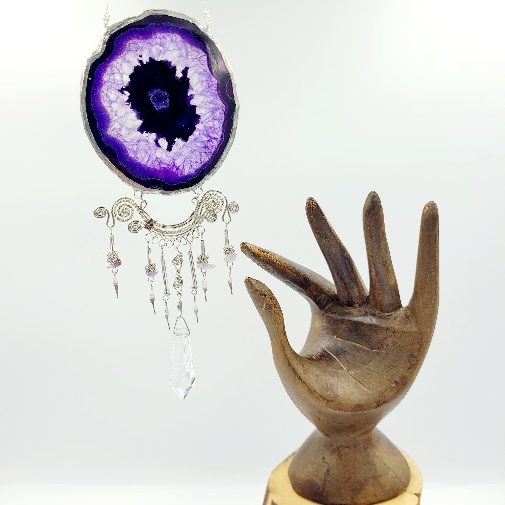 This beautiful Agate slice Hanging Crystal will brighten up any space. It contains Agate, which is known to enhance metal function, improve concentration and perception, and increase analytical abilities. Bring positive energy into your home with this stunning natural stone decoration.
