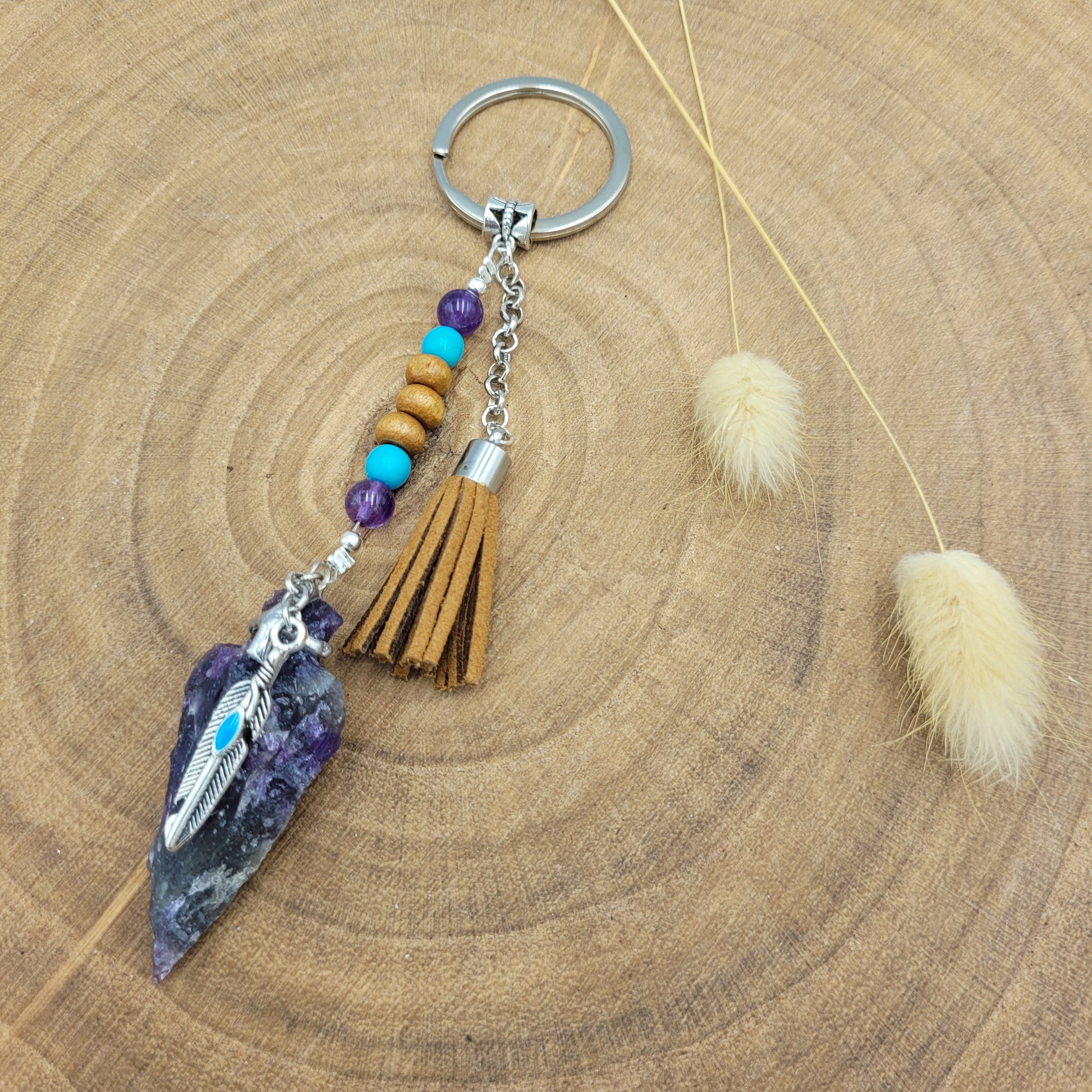 Our Amethyst Arrowhead Keyring will safeguard you against the most negative forces, providing a sense of peace and protection. Crafted from natural amethyst, it will enhance your intuition and meditation practice, calming your mind and spirit. An ideal companion while traveling, it will ward off nightmares and boost your immune system. Reap the benefits of this exclusive, luxurious keyring and feel secure in every situation.