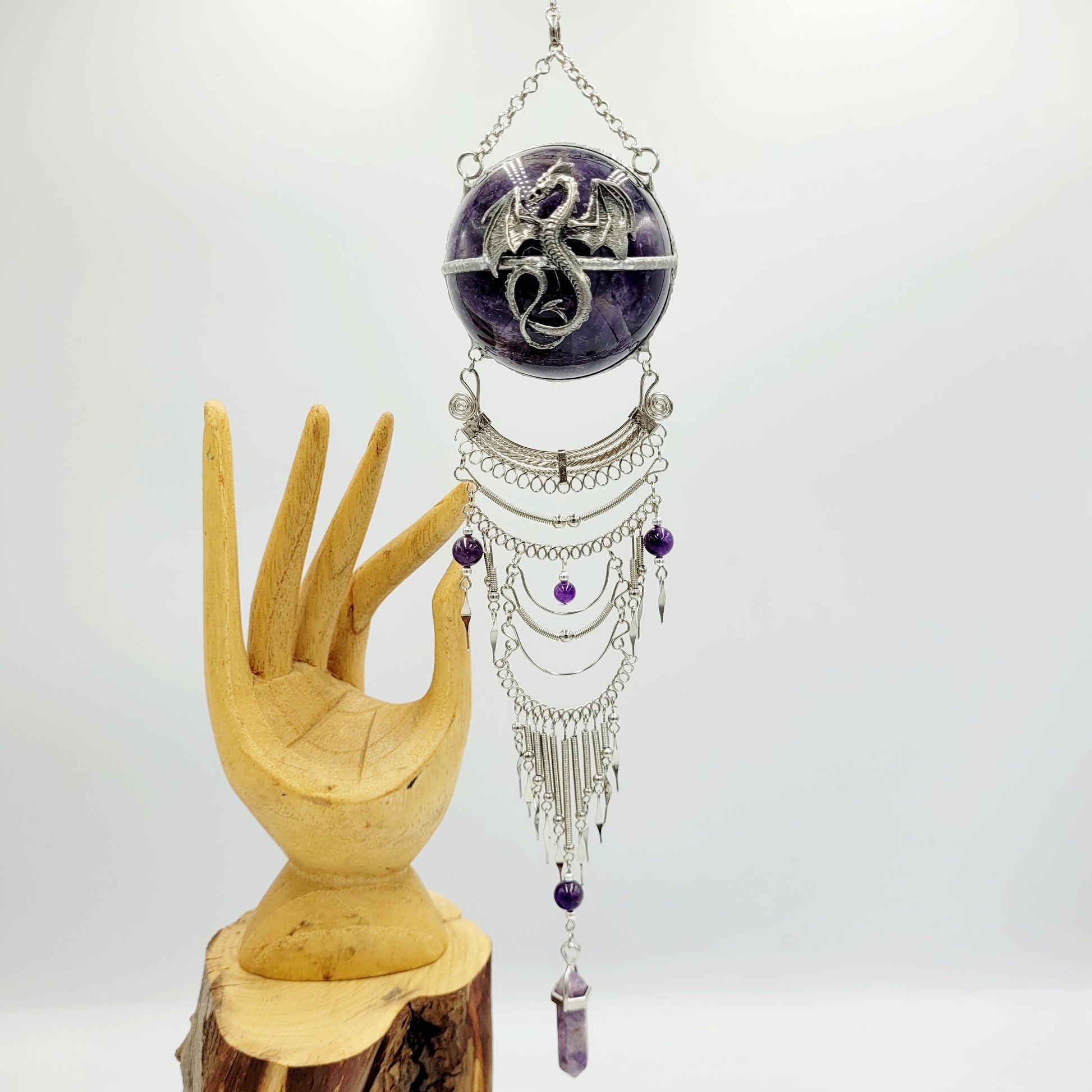 The Amethyst Hanging Spheres provide a perfect addition to any space seeking enhanced natural serenity. Offering calming and tranquilizing properties, these spheres are known to promote relaxation and help maintain balanced temperament. Give your space a luxurious feel and the energy of tranquility with these unique pieces of amethyst.