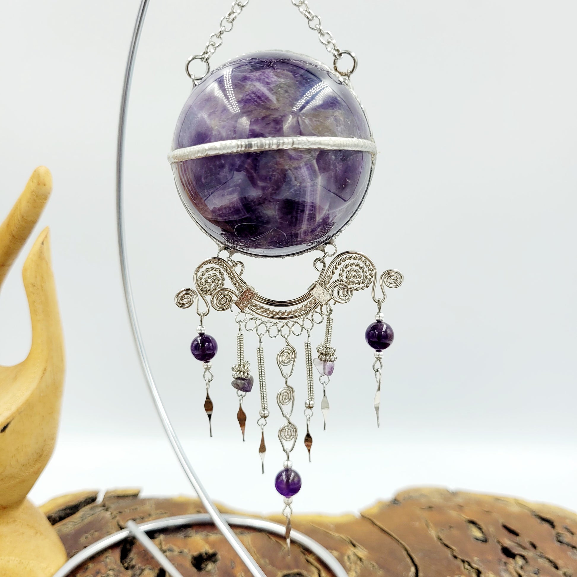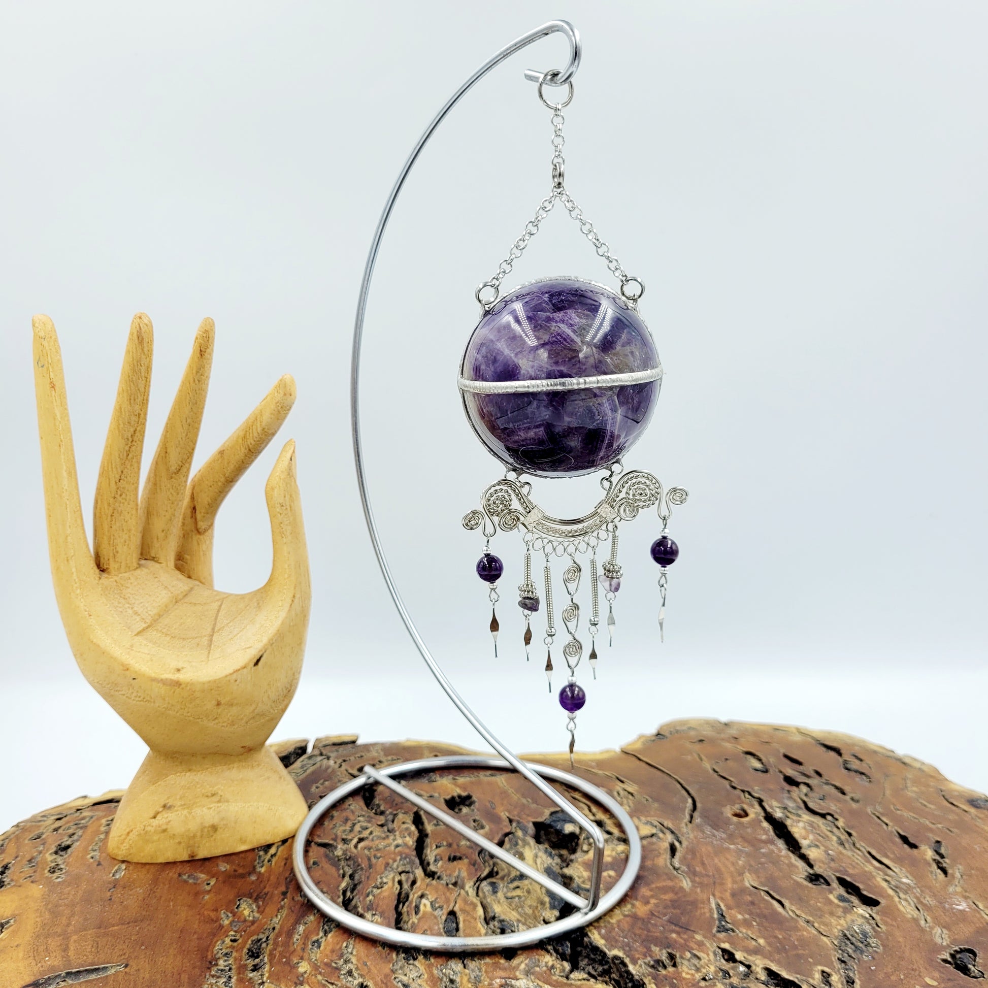 The Amethyst Hanging Sphere provide a perfect addition to any space seeking enhanced natural serenity. Offering calming and tranquilizing properties, these spheres are known to promote relaxation and help maintain balanced temperament. Give your space a luxurious feel and the energy of tranquility with these unique pieces of amethyst.