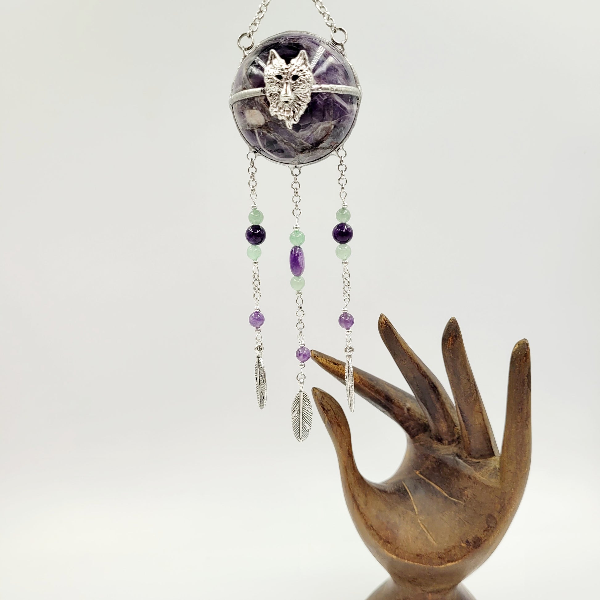 The Amethyst Hanging Spheres provide a perfect addition to any space seeking enhanced natural serenity. Offering calming and tranquilizing properties, these spheres are known to promote relaxation and help maintain balanced temperament. Give your space a luxurious feel and the energy of tranquility with these unique pieces of amethyst.