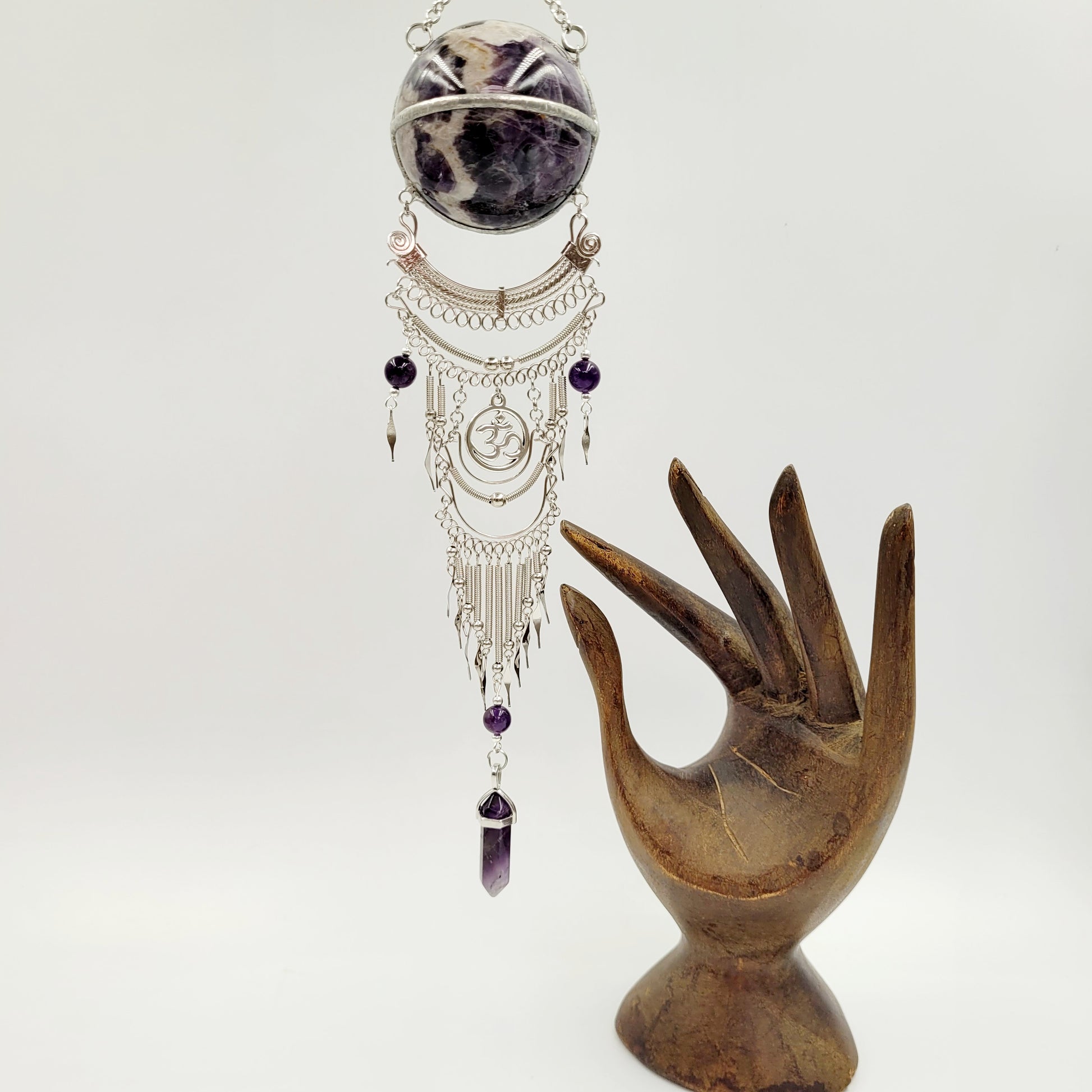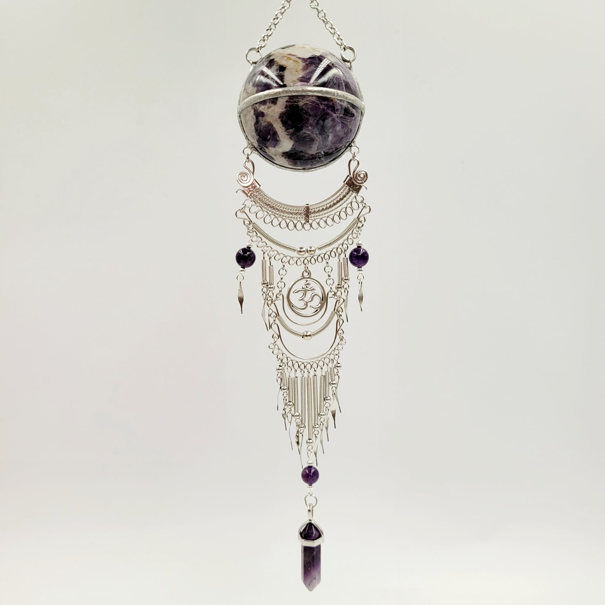 The Amethyst Hanging Spheres provide a perfect addition to any space seeking enhanced natural serenity. Offering calming and tranquilizing properties, these spheres are known to promote relaxation and help maintain balanced temperament. Give your space a luxurious feel and the energy of tranquility with these unique pieces of amethyst.