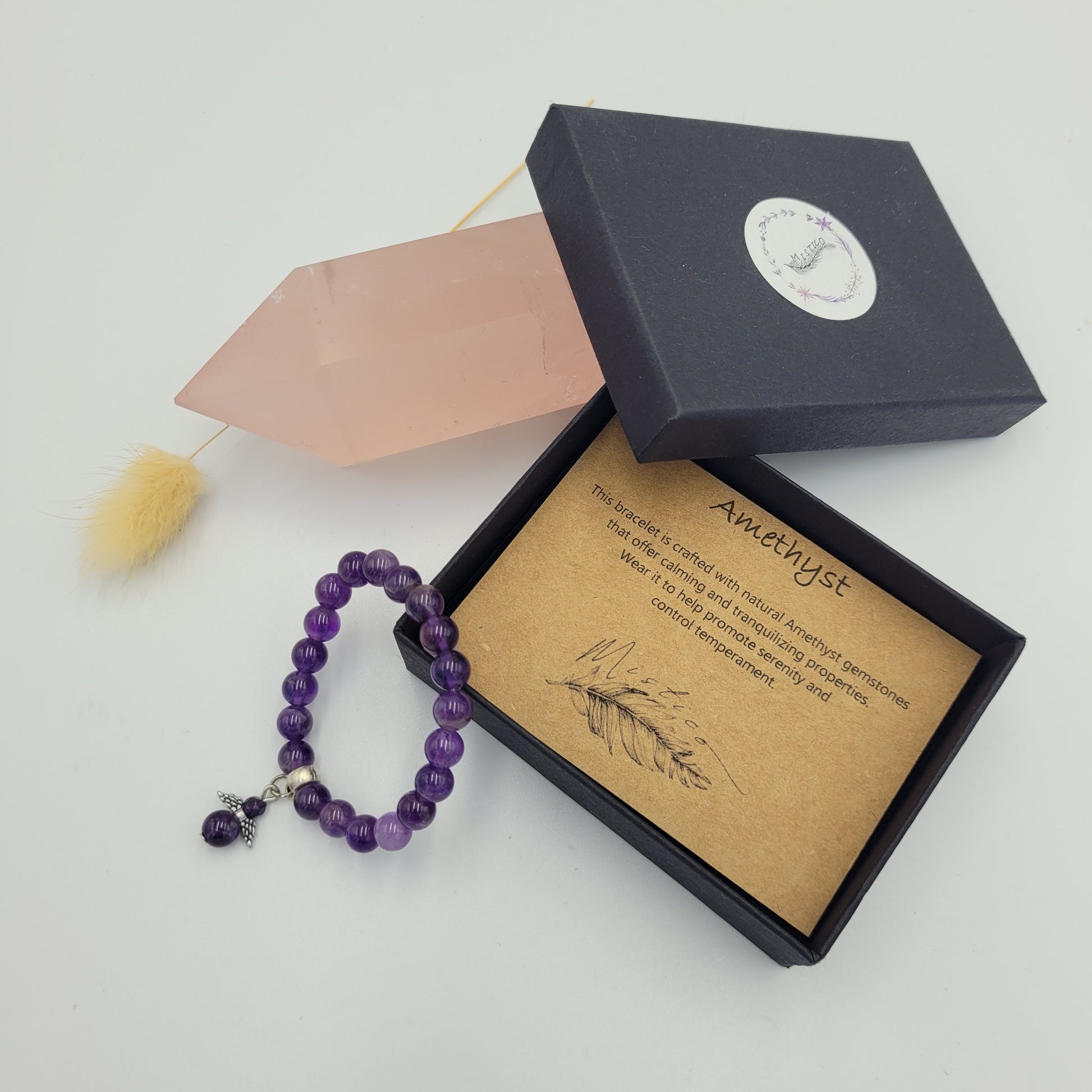 Give your child the calming power of Amethyst with these beautiful angel-themed bracelets. Natural, tranquilizing Amethyst gemstones offer peace and serenity, helping your little one navigate their moods with control and confidence. Dress your child in love with Amethyst Kids Angel Bracelets!