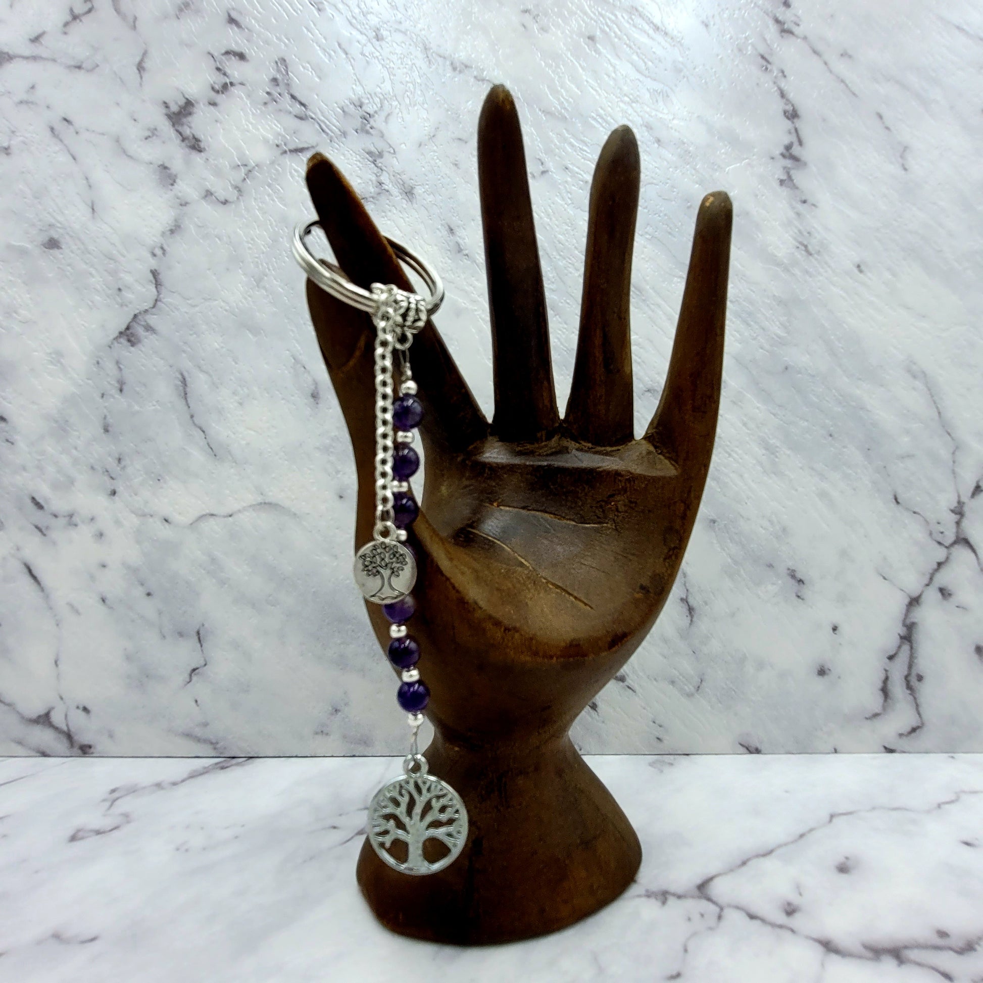 This Amethyst Tree of Life Crystal Charm Keyring is perfect for capturing peaceful and tranquil moments. Made with amethyst for calming and clearing vibrations, it also features a tree of life, a sacred symbol of interconnection with the universe. It's a charm that offers strength, growth, and new beginnings to help you find your inner peace.
