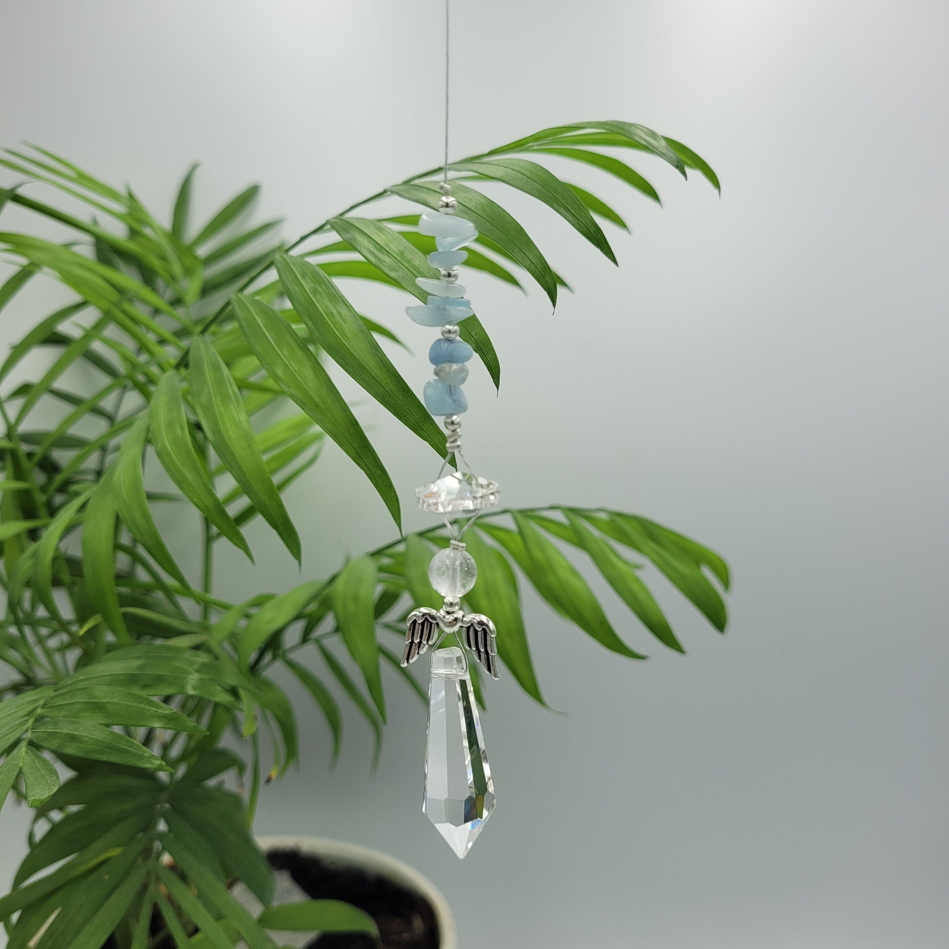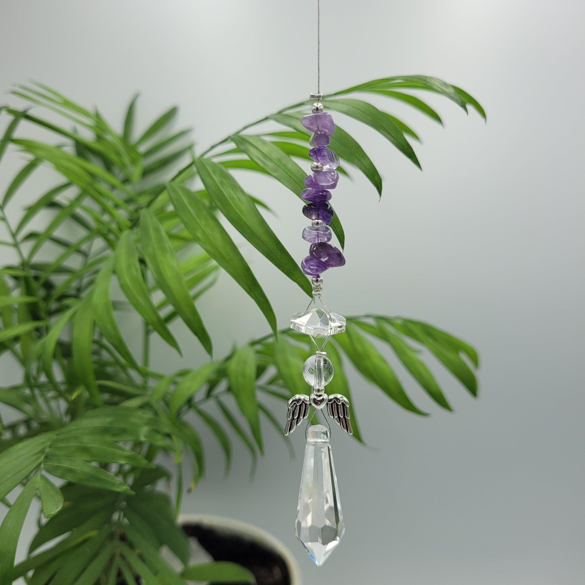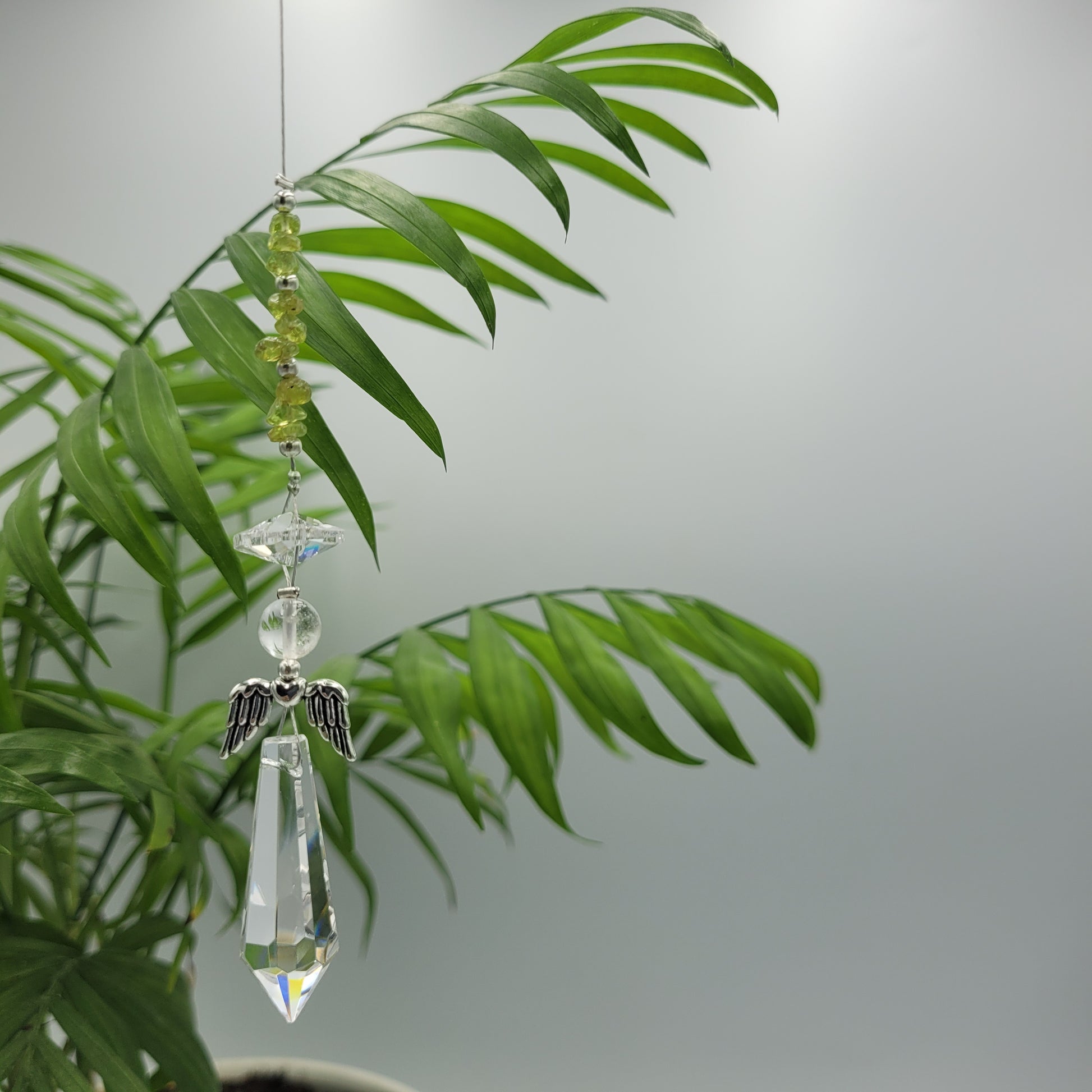 Hang the Angel Long Crystal Charm Suncatcher in your home for a peaceful, beautiful display of light. This crystal suncatcher is composed of crystals which symbolize healing, peace and love, and will bring energy and positive vibes to any room.