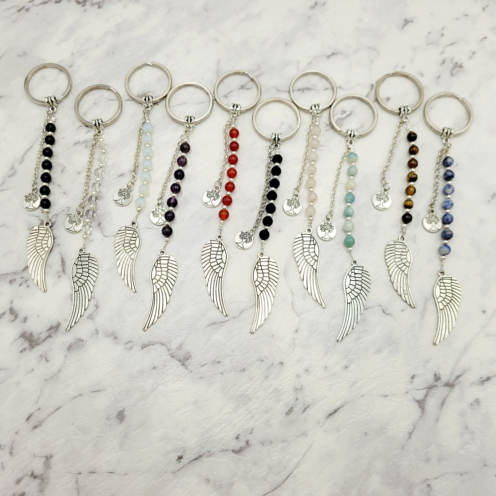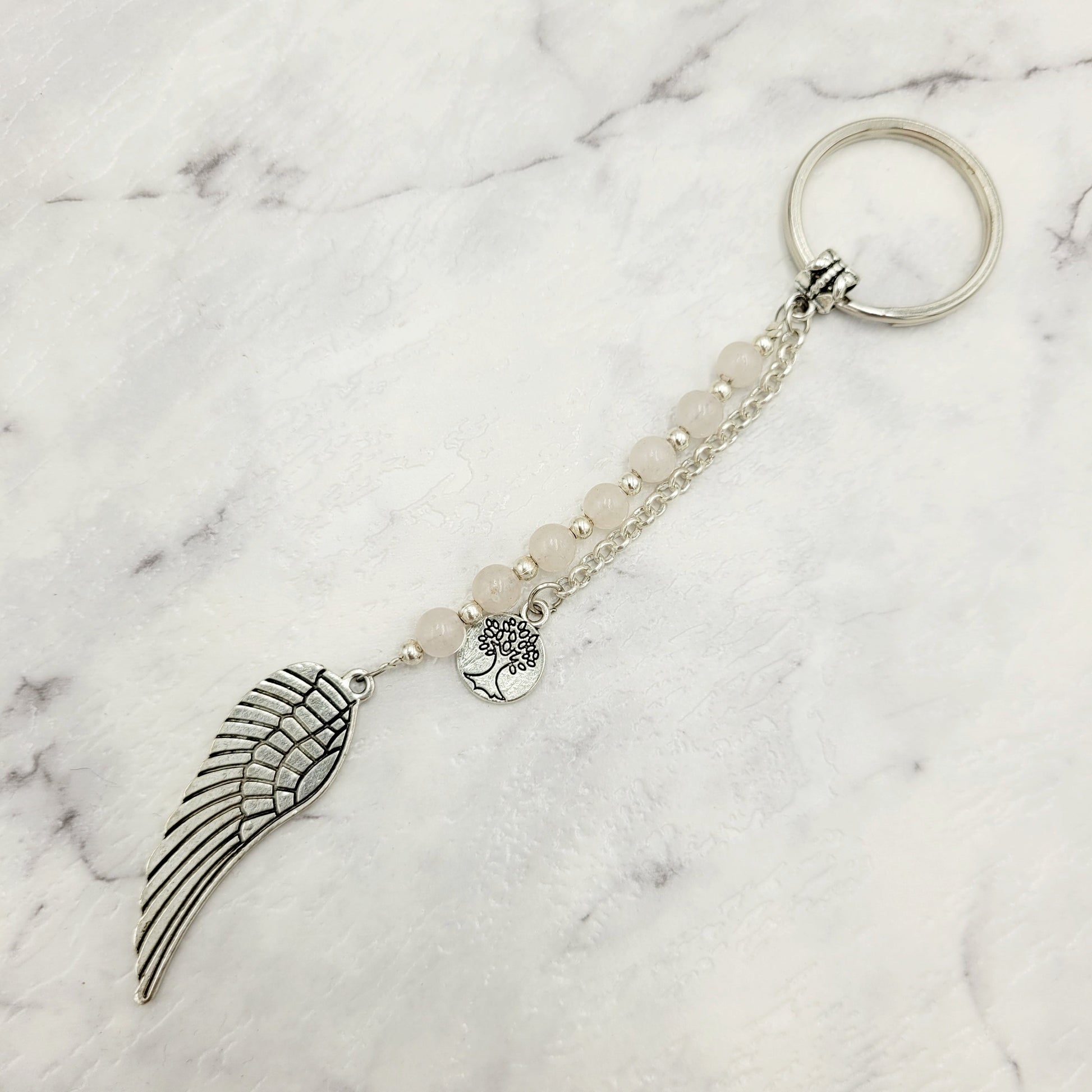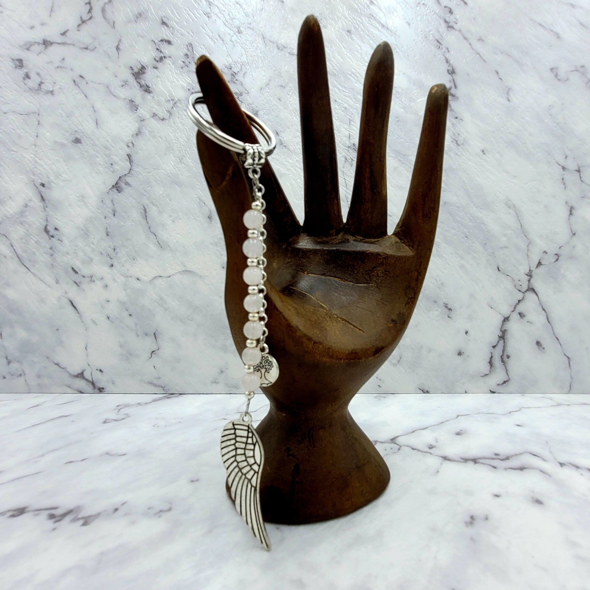 Rose Quartz Angel Wing Crystal Charm Keyring