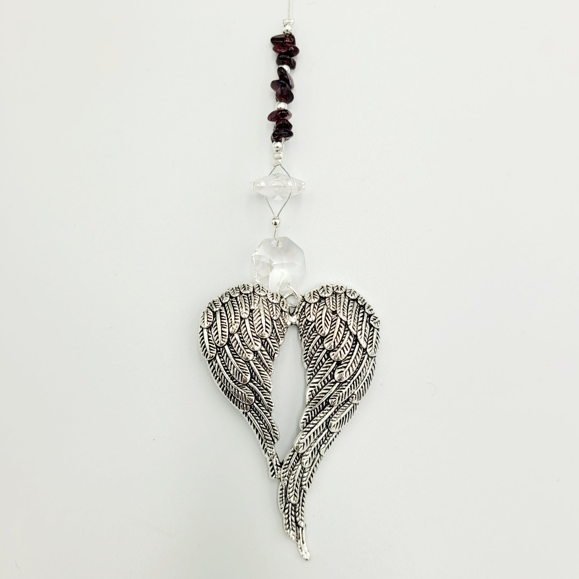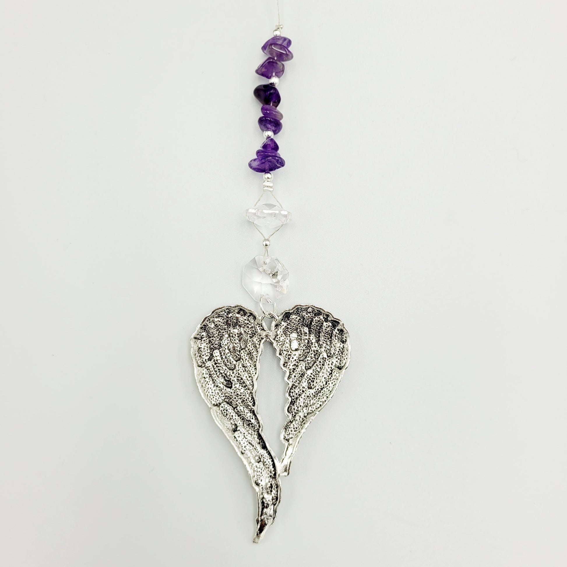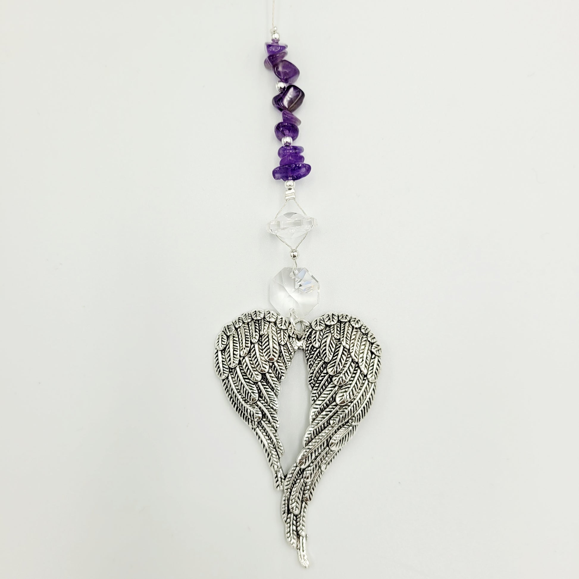 Hang the Angel Crystal Charm Suncatcher in your home for a peaceful, beautiful display of light. This crystal suncatcher is composed of crystals which symbolize healing, peace and love, and will bring energy and positive vibes to any room.