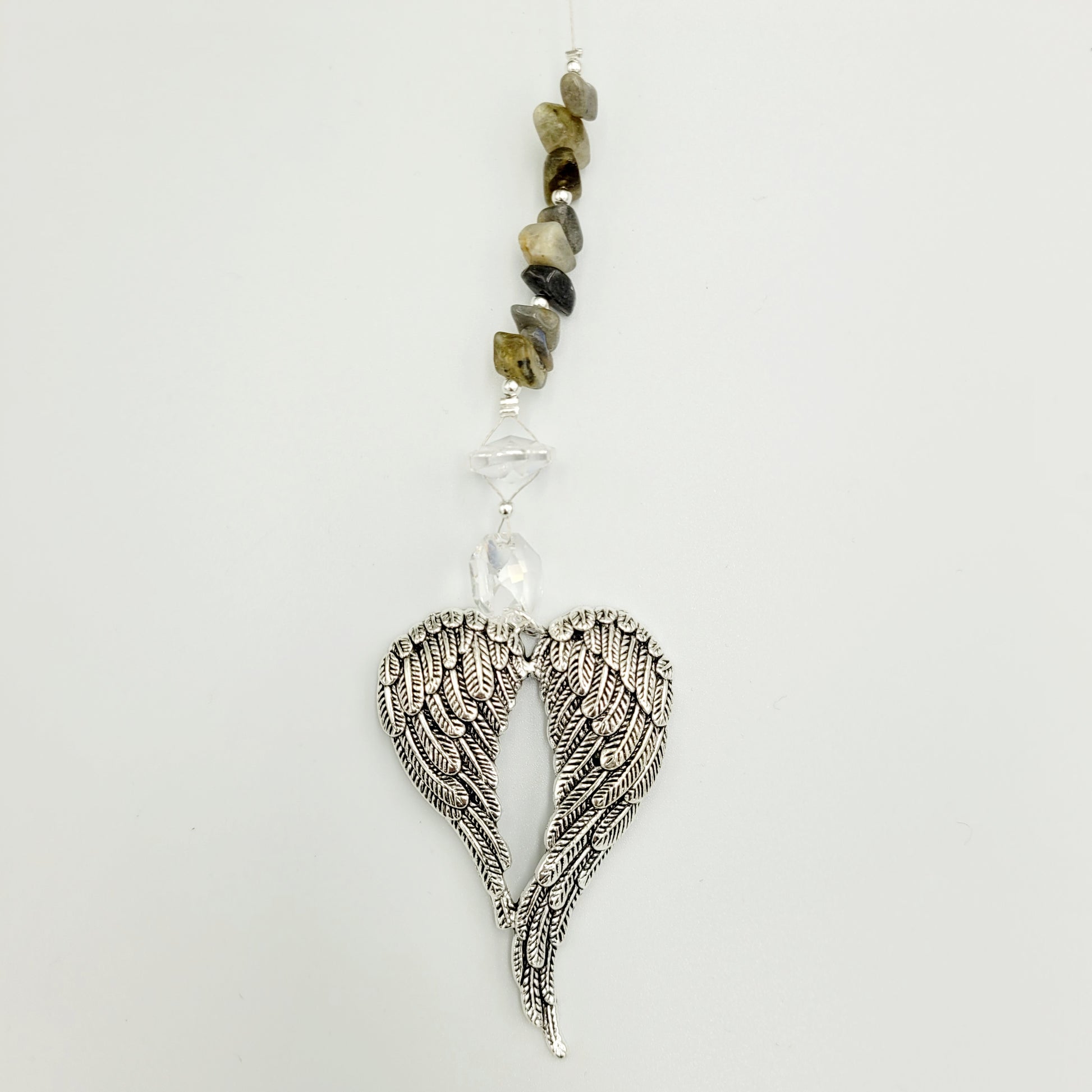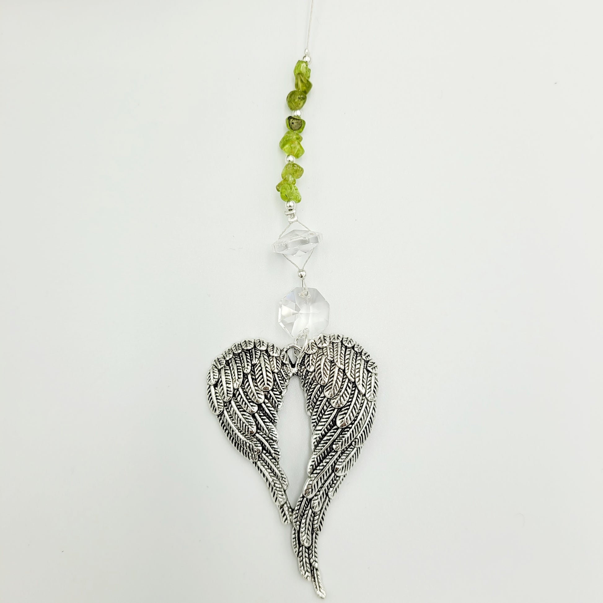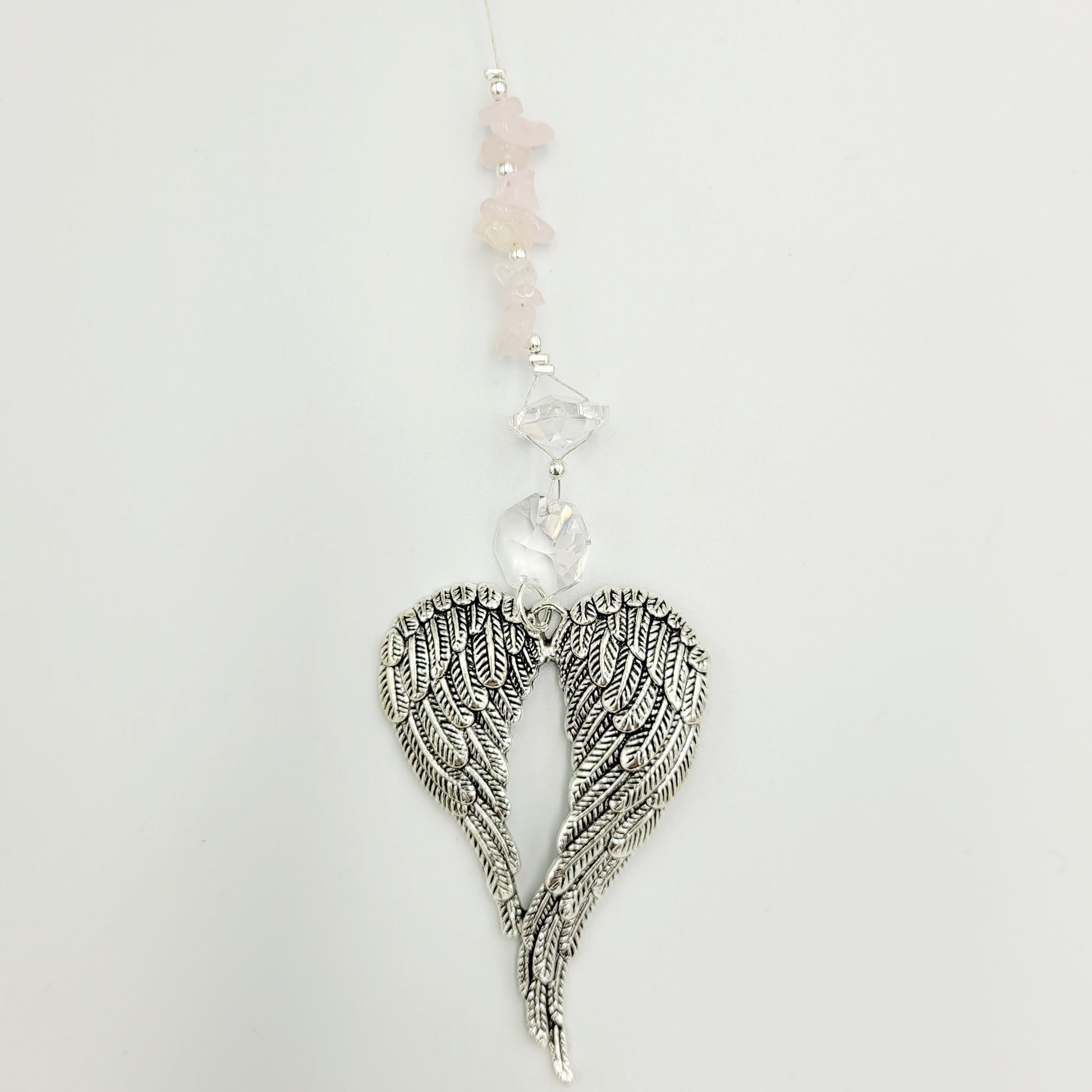 Hang the Angel Crystal Charm Suncatcher in your home for a peaceful, beautiful display of light. This crystal suncatcher is composed of crystals which symbolize healing, peace and love, and will bring energy and positive vibes to any room.