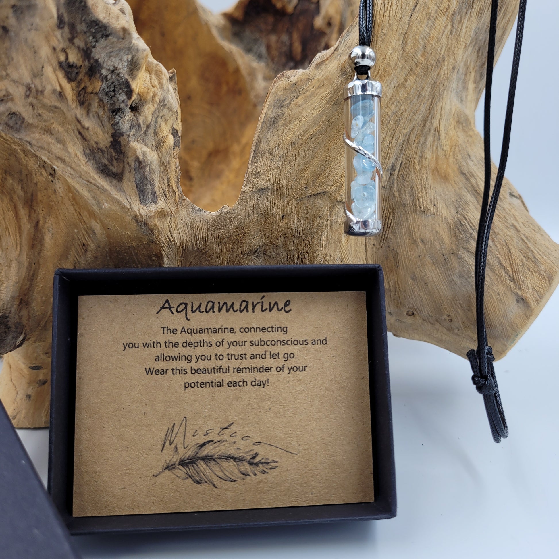 Our Crystal Filled Tube Necklaces are a beautiful piece that you can wear to promote healing and protection wherever you go. With its beautiful crystals encased in a tube necklace pendant, it is a powerful accessory for those looking for daily support from their chosen stone. Put on this necklace and feel surrounded by calming, protective energies.