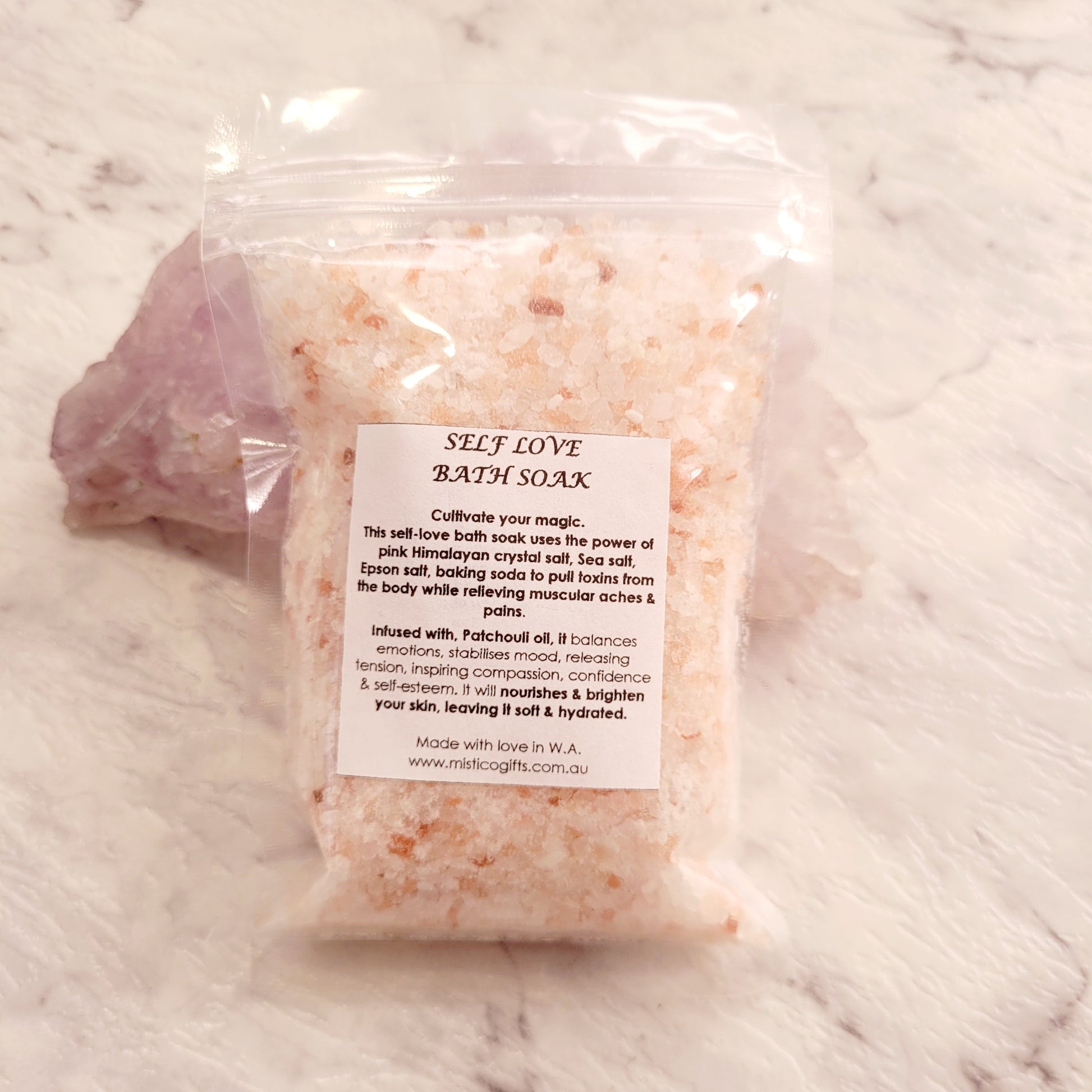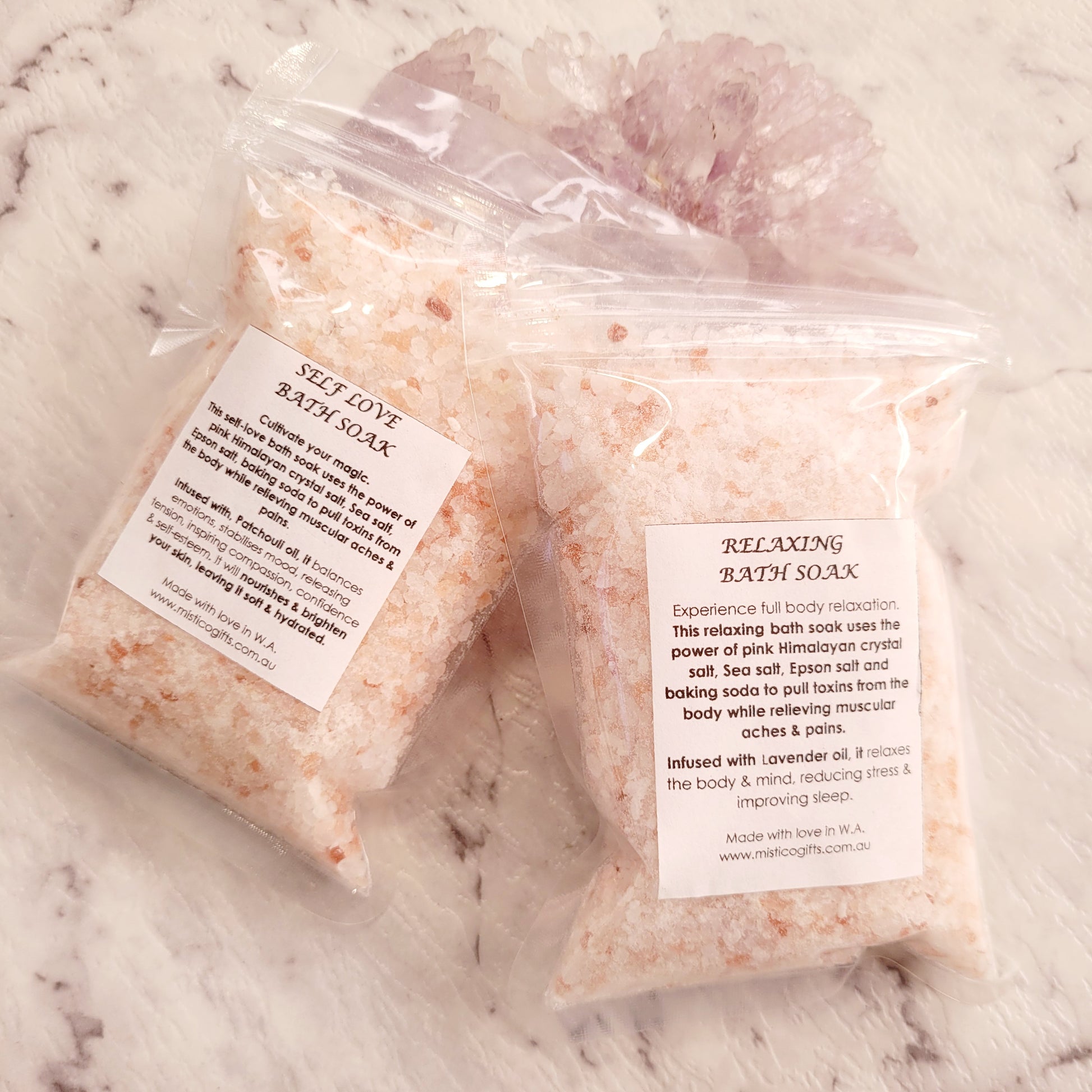 This self-love bath soak uses the power of pink Himalayan crystal salt, Sea salt, Epson salt, baking soda to pull toxins from the body while relieving muscular aches & pains.