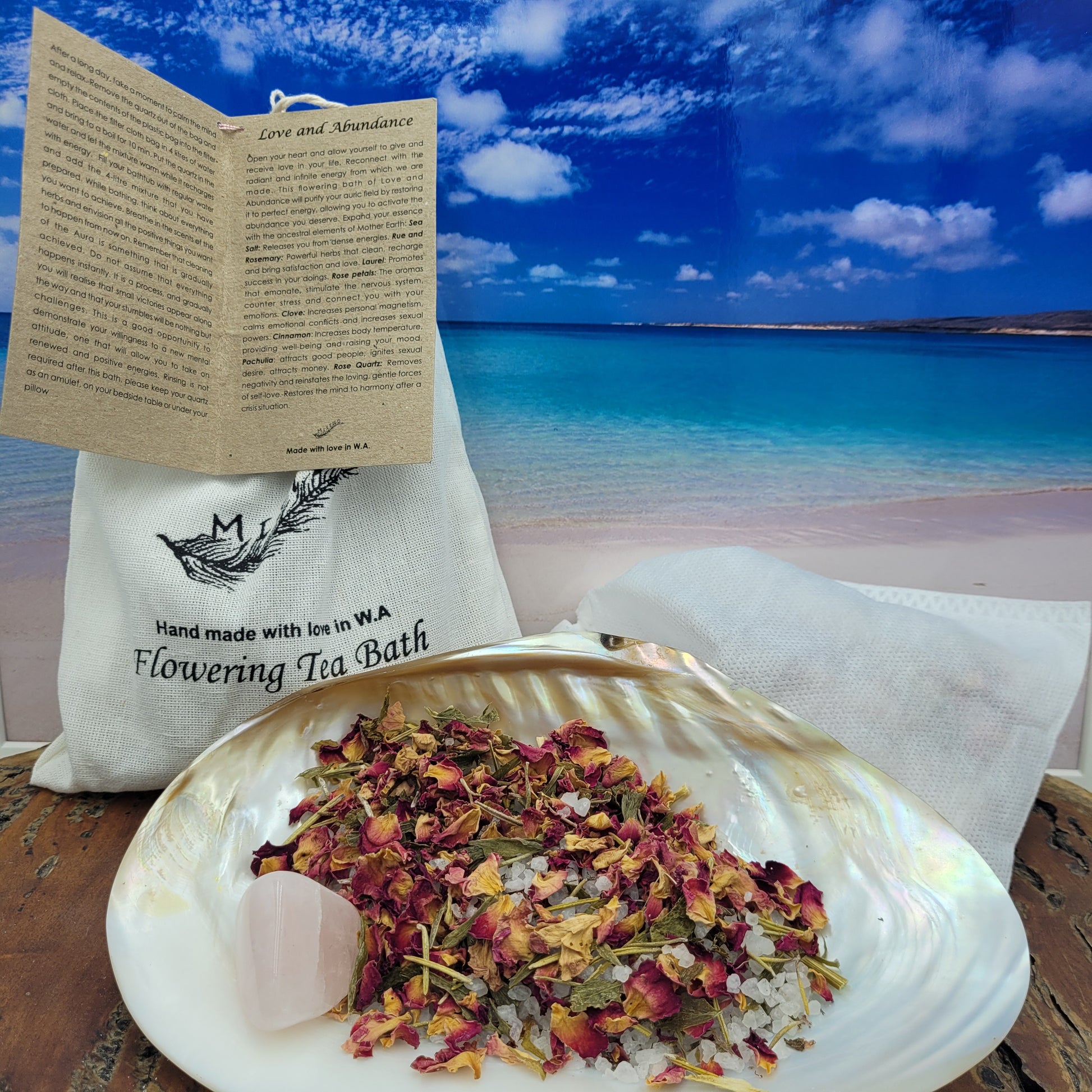 Open your heart and allow yourself to give and receive love in your life. Reconnect with the radiant and infinite energy from which we are made. This flowering bath of Love and Abundance will purify your auric field by restoring it to perfect energy, allowing you to activate the abundance you deserve. Expand your essence with the ancestral elements of Mother Earth: Sea Salt: Releases you from dense energies. Rue and Rosemary: Powerful herbs that clean, recharge and bring satisfaction and love. Laurel: Promotes success in your doings. Rose petals: The aromas that emanate, stimulate the nervous system, counter stress and connect you with your emotions. Clove: Increases personal magnetism, calms emotional conflicts and increases sexual powers. Cinnamon: Increases body temperature, providing well-being and raising your mood. Pachulia: attracts good people, ignites sexual desire, attracts money. Rose Quartz: Removes negativity and reinstates the loving, gentle forces of self-love. Restores the mind to harmony after a crisis situation.