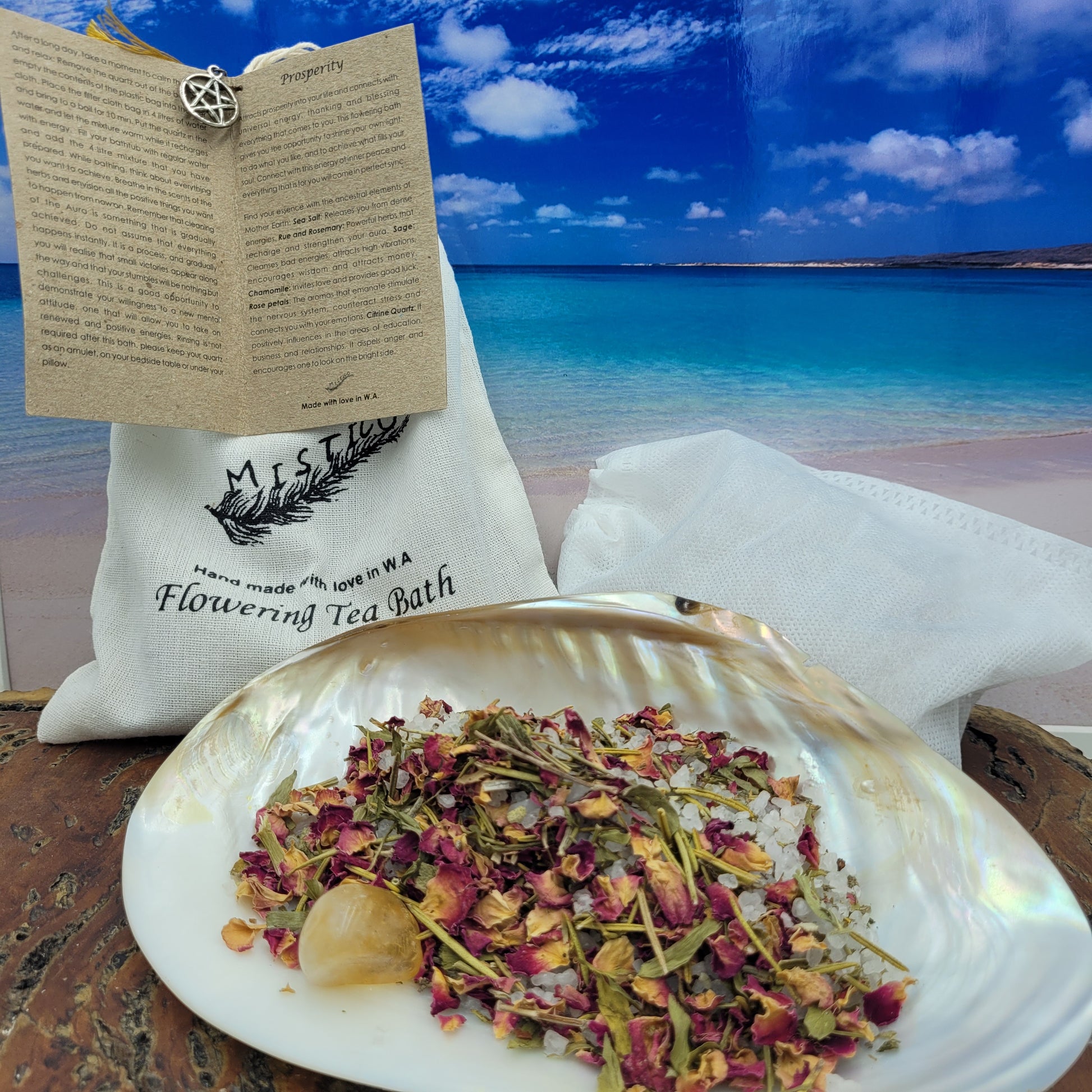 After a long day, take a moment to calm the mind and relax. Remove the quartz out of the bag and empty the contents of the plastic bag into the filter cloth. Place the filter cloth bag in 4 litres of water and bring to a boil for 10 min. Put the quartz in the water and let the mixture warm while it recharges with energy. Fill your bathtub with regular water and add the 4-litre mixture that you have prepared. While bathing, think about everything you want to achieve. Breathe in the scents of the herbs and envision all the positive things you want to happen from now on. Remember that cleaning of the Aura is something that is gradually achieved. Do not assume that everything happens instantly. It is a process, and gradually you will realise that small victories appear along the way and that your stumbles will be nothing but challenges. This is a good opportunity to demonstrate your willingness to a new mental attitude, one that will allow you to take on renewed and positive energies. Rinsing is not required after this bath. ¸please keep your quartz as an amulet, on your bedside table or under your pillow.