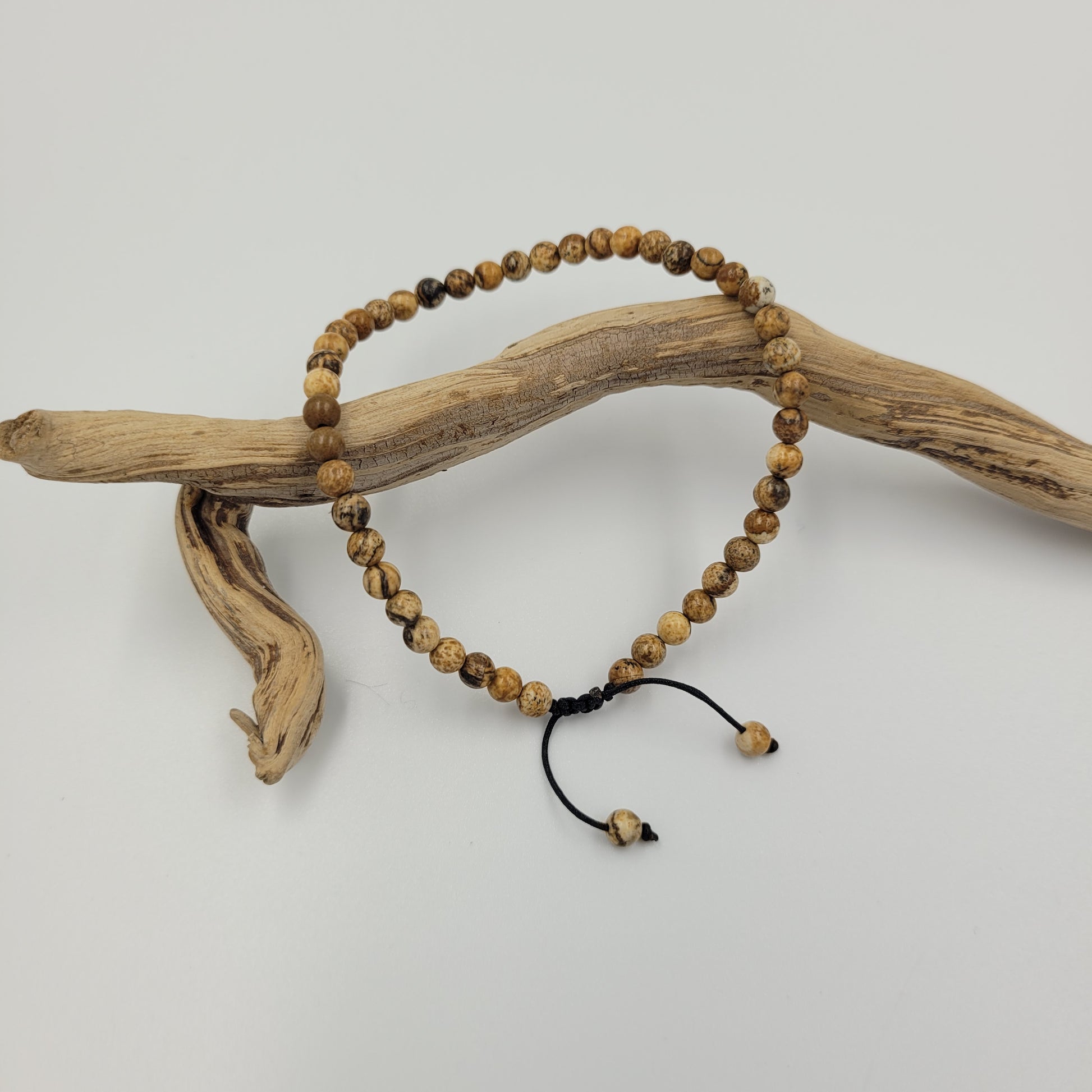 Find peace and harmony with our Men's abjustable Bracelet 4mm Natural Stone. The comforting natural stone, Picture Jasper, helps alleviate fears. Cultivate inner balance and strength with this unique and beautiful piece.