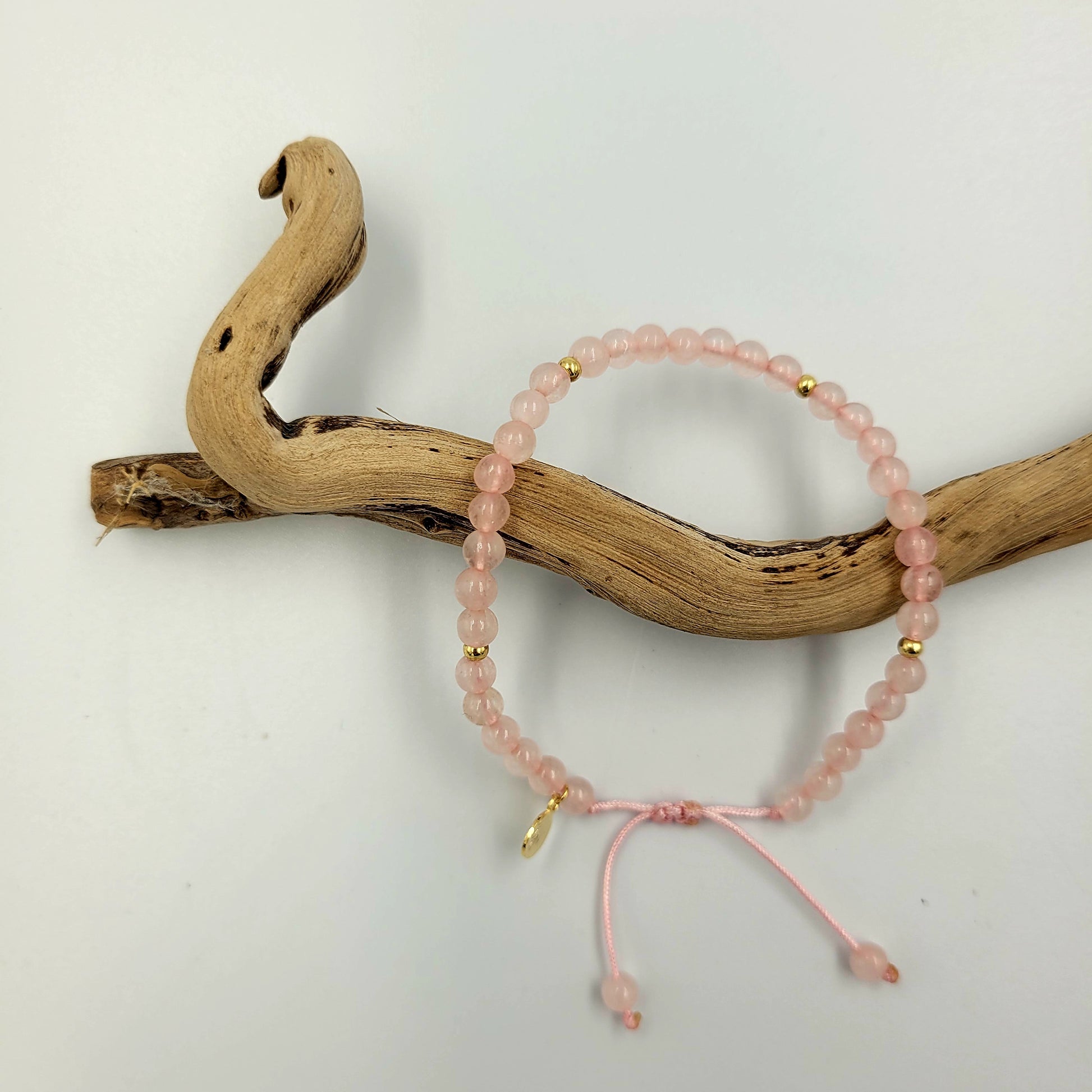 Bracelet 4mm Natural Stone with Gold plated beads - Rose Quartz
