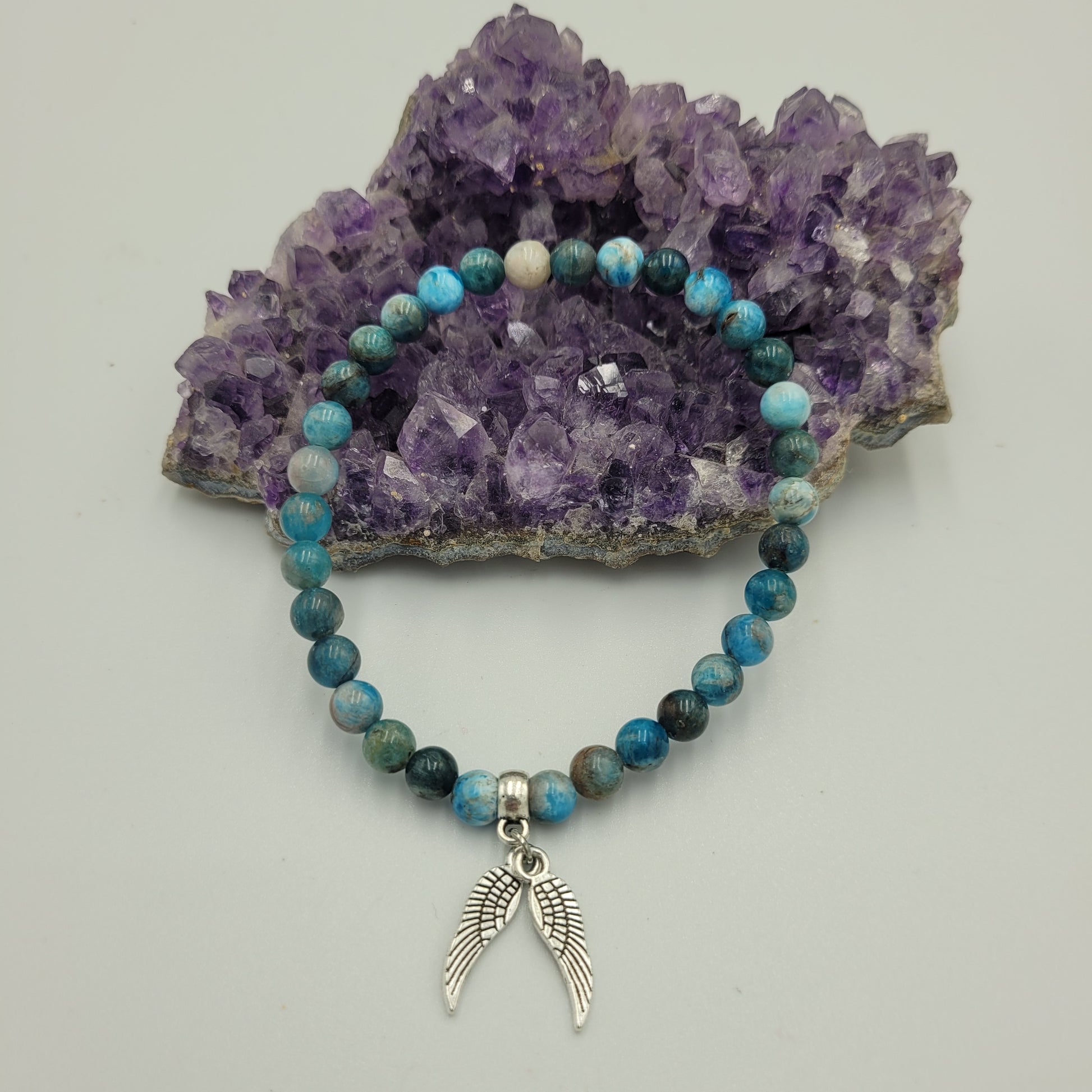 This beautiful Bracelet Apatite 6mm Wings is the perfect blend of fashion and function. Crafted with natural 6mm apatite stones, it is said to bring peace and harmony, and facilitate clear intellect and concentration. By enhancing unconditional love, it also helps to focus the mind and allows learning without distraction.