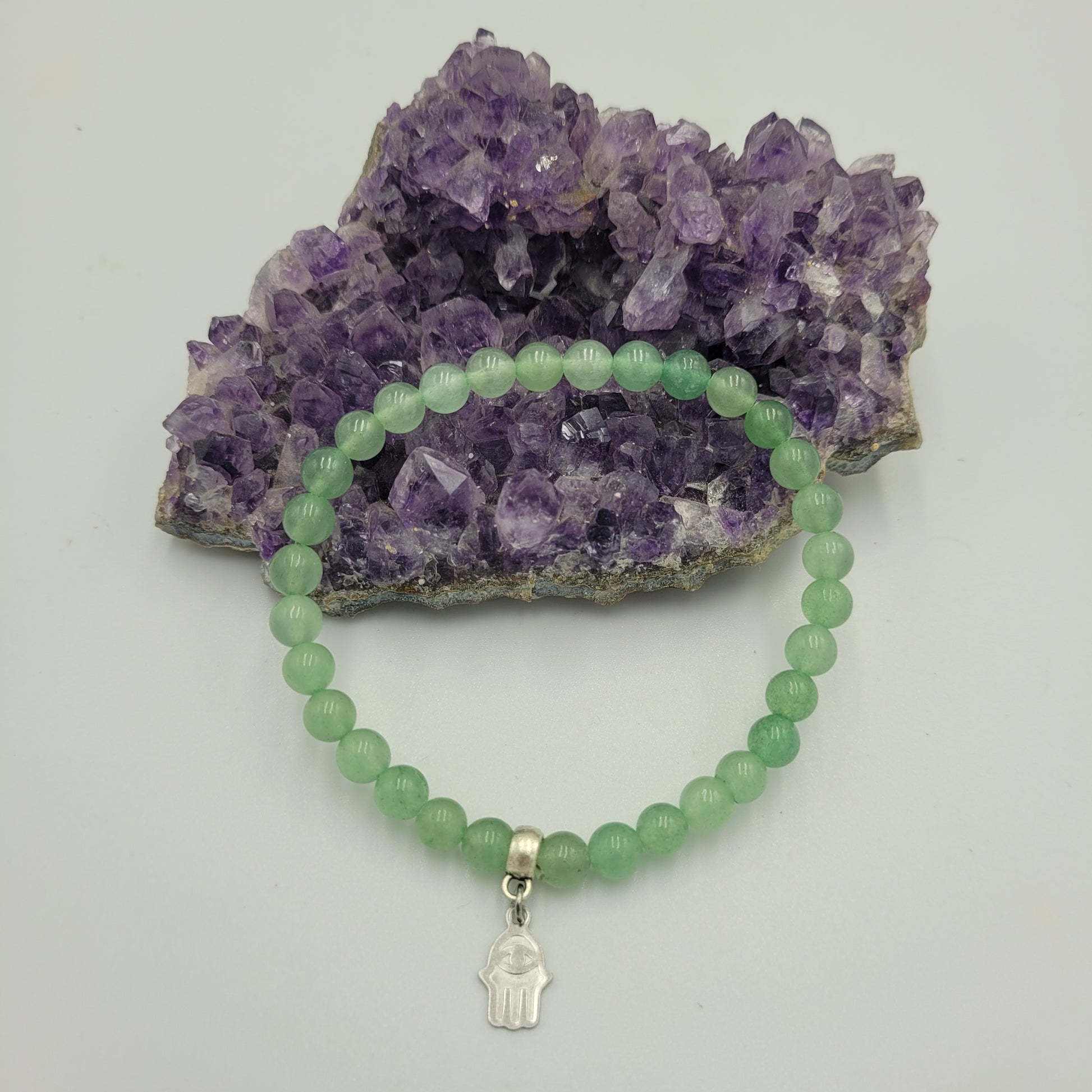 This bracelet of aventurine 6 mm beads and an engraved hamsa is thought to offer calm and clarity, diffusing negative emotions and promoting compassion. It's the perfect accompaniment to your daily routine.