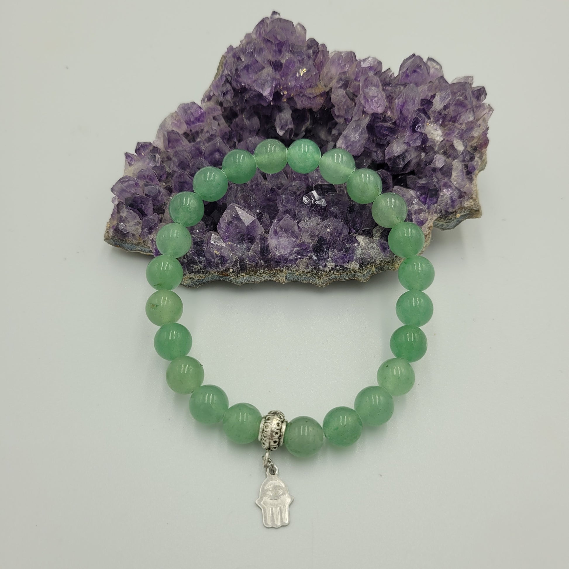 This elegant Bracelet Aventurine 8mm / Hamsa is crafted with beautiful aventurine beads to promote feelings of abundance, prosperity, and compassion. Aventurine is believed to help diffuse negative energy and bring balance to the wearer.