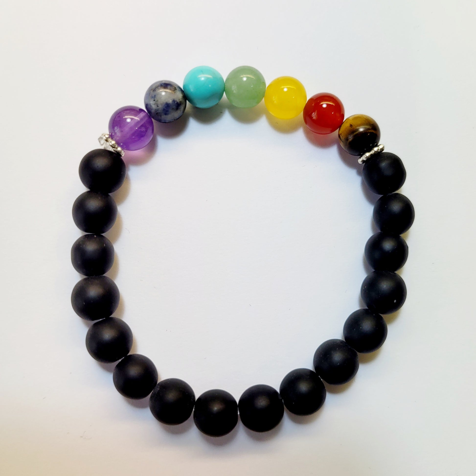 This bracelet is a holistic way to bring energy fields back into balance. Crafted with 8mm Black Onyx stones, they use Chakra Balanced stones to realign and balance the energy fields of each specific chakra, aligning and harmonizing mind, body and soul.