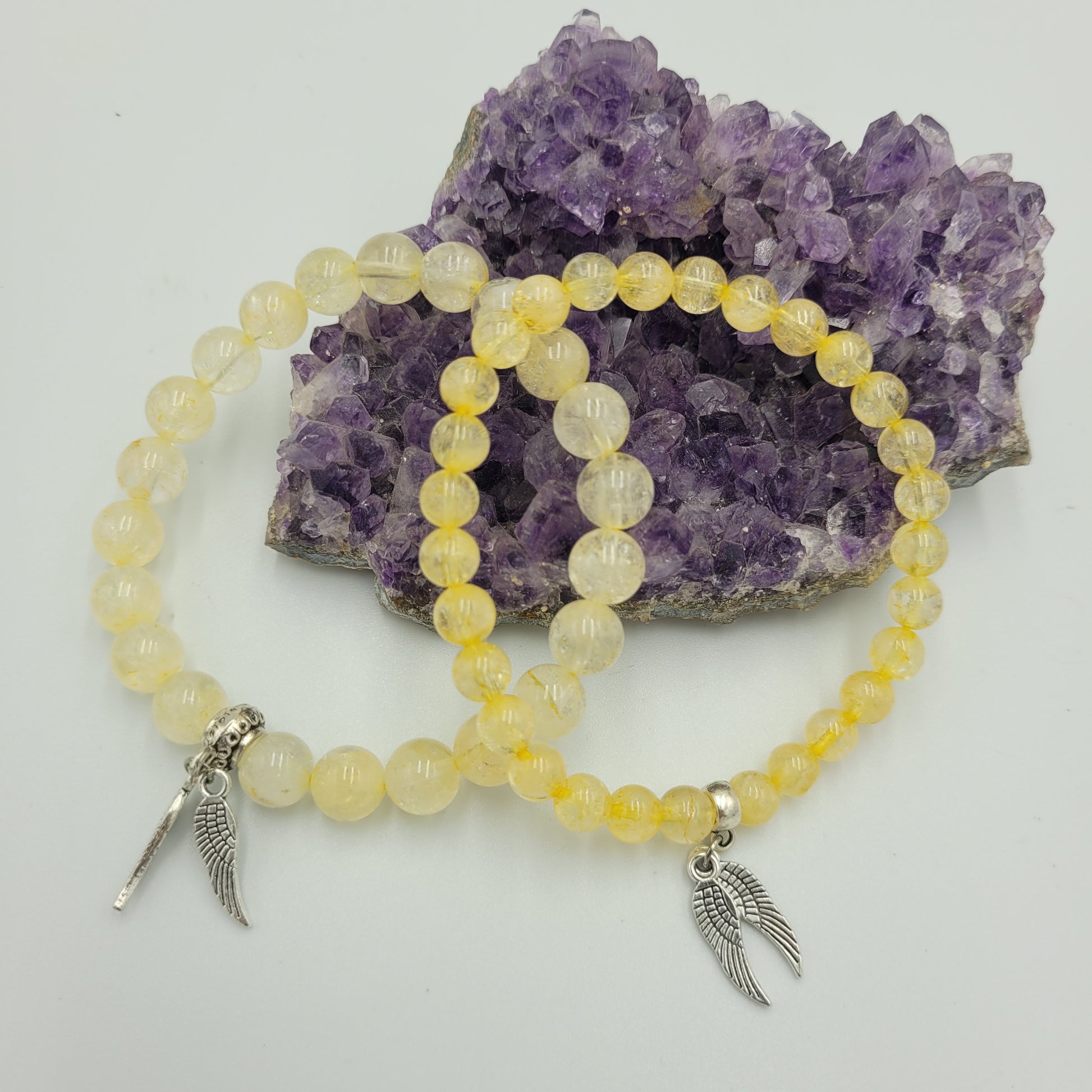 A timeless and exquisite expression of style and good fortune, this bracelet blends the stunning beauty of natural Citrine stone with a powerful lucky charm. Enjoy the calming energy of Citrine’s radiance and the protecting presence of the Wings , both sure to bring you prosperity and positive energy to dispel anger.
