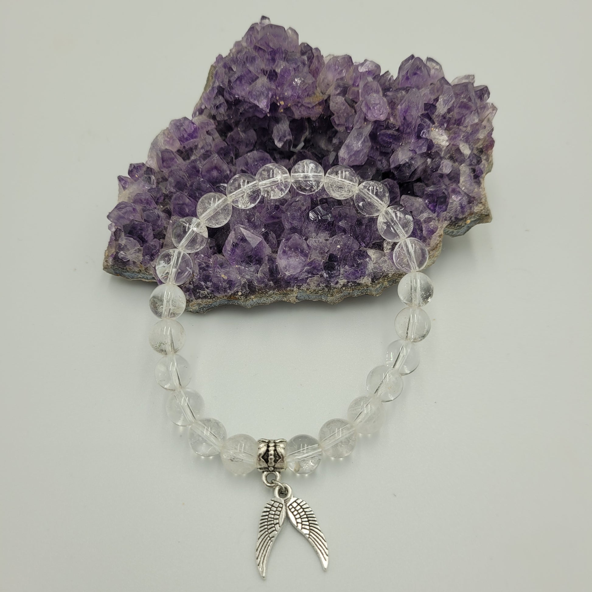 Bracelet Clear quartz 8mm Wings