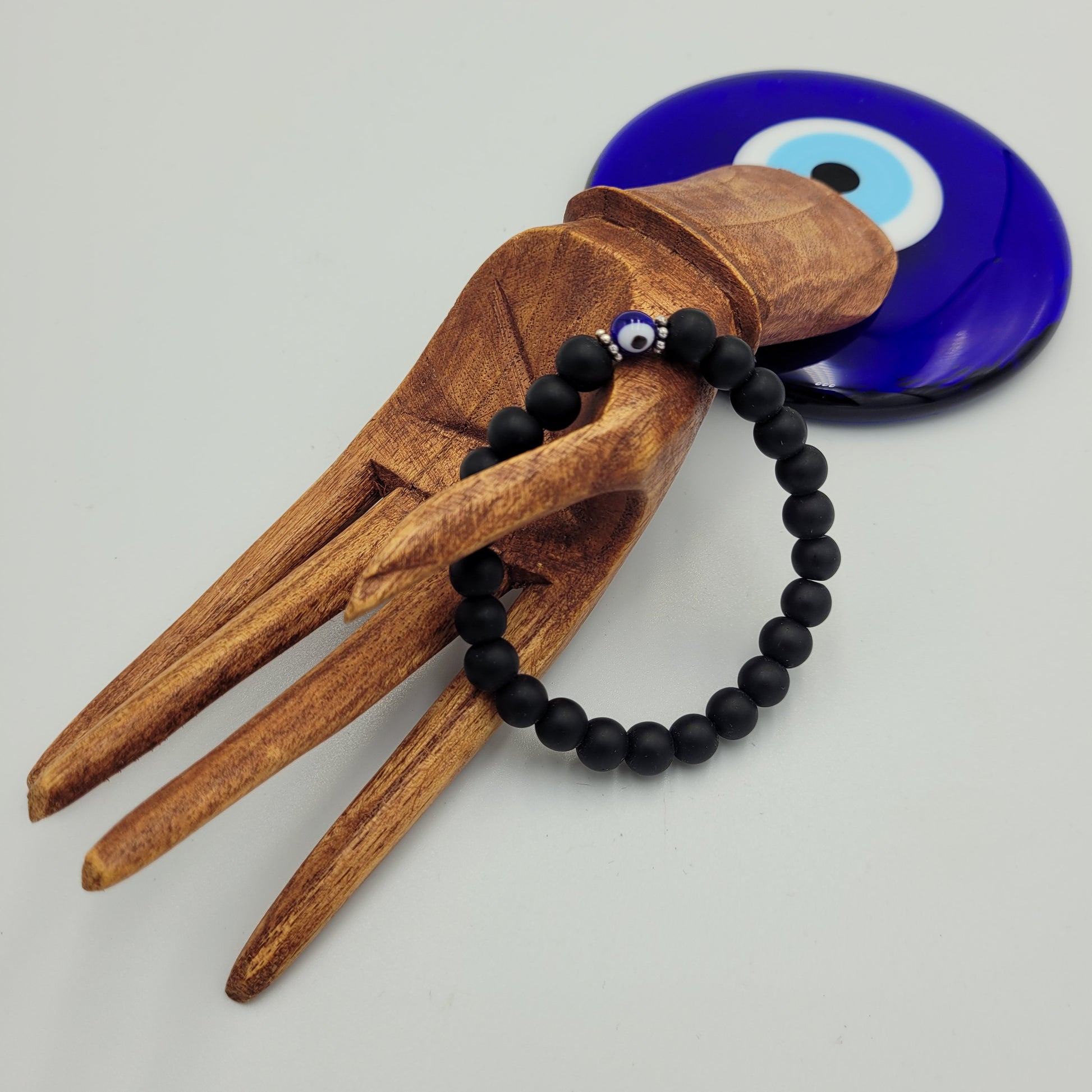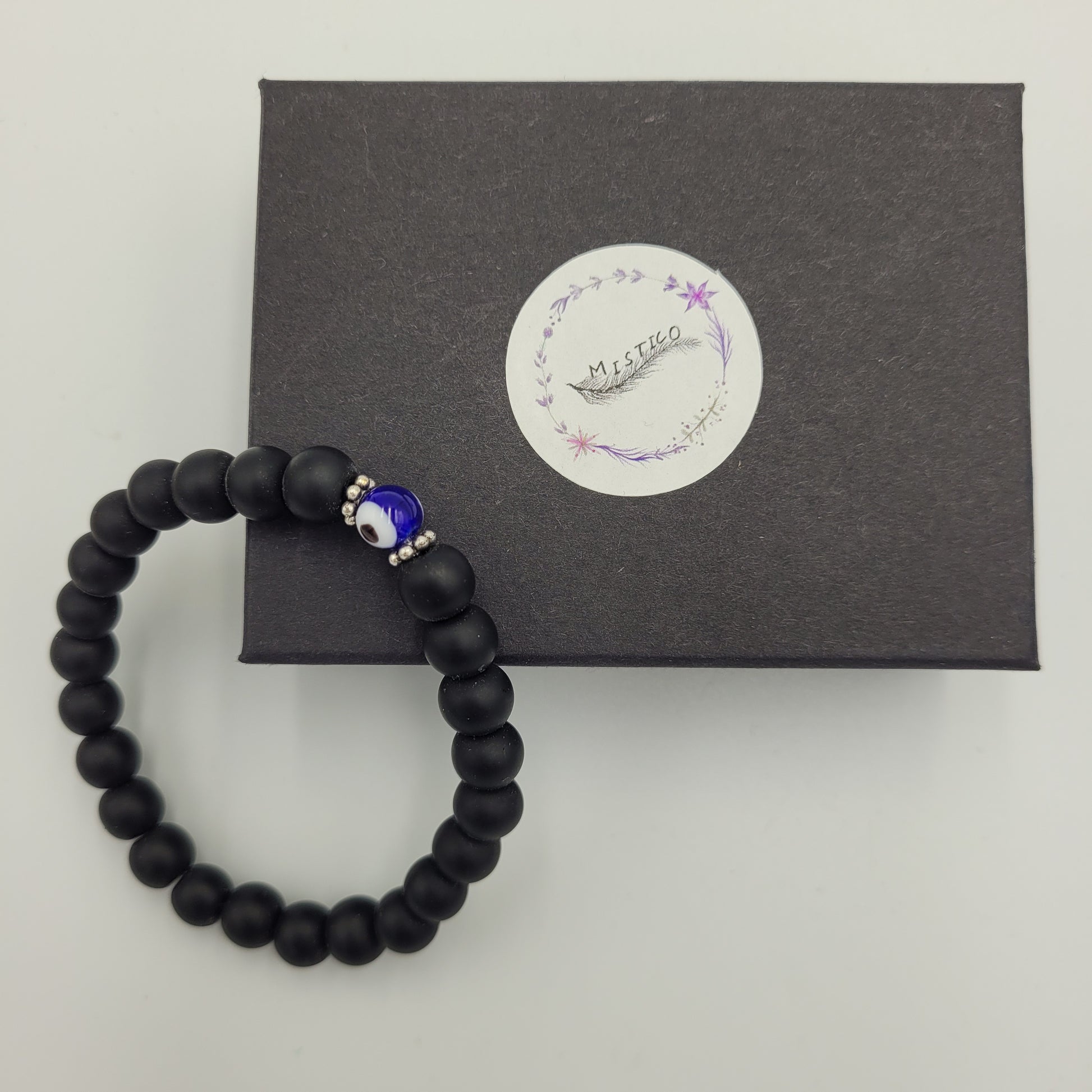 Bracelet Evil Eye & Black Onyx 8mm stone