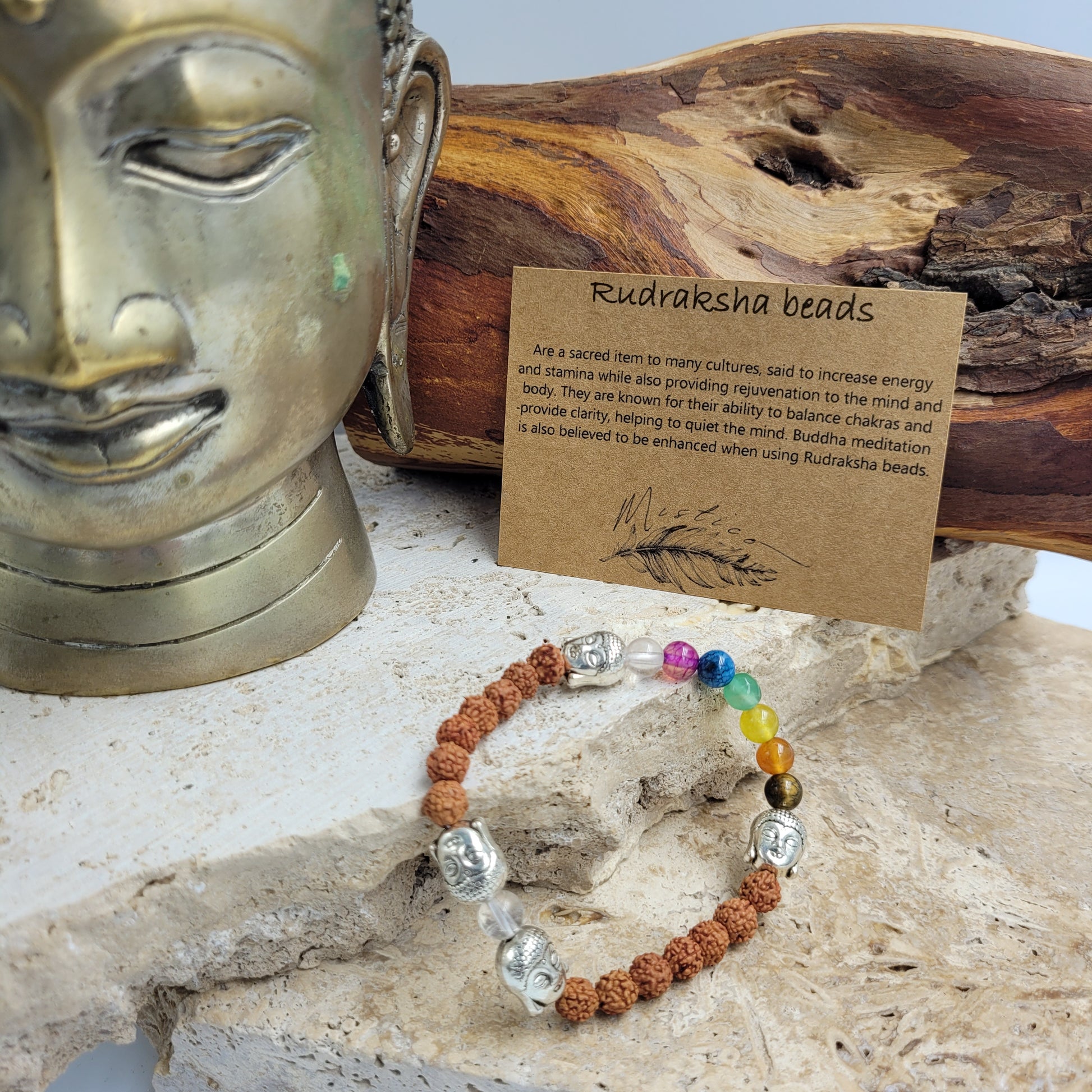 This Bracelet Rudraksha Chakra balance is a sacred item for many cultures. It's said to increase energy and stamina, while providing rejuvenation to the mind and body. It's also known for its ability to balance chakras, provide clarity, and enhance Buddha meditation. Get ready to experience improved focus and balance with this special item.