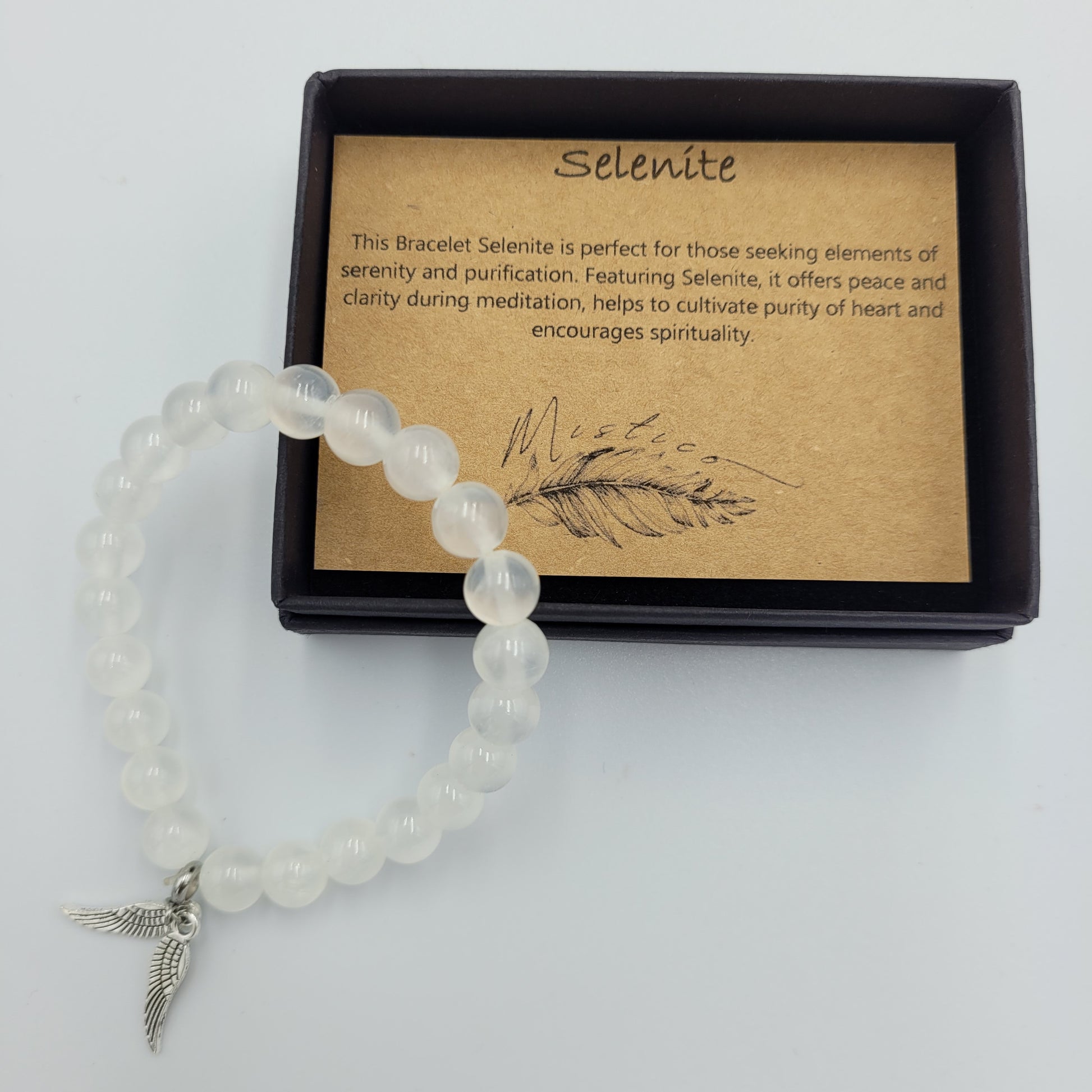 This Bracelet Selenite 8mm Wings is perfect for those seeking elements of serenity and purification. Featuring Selenite, it offers peace and clarity during meditation, helps to cultivate purity of heart and encourages spirituality.