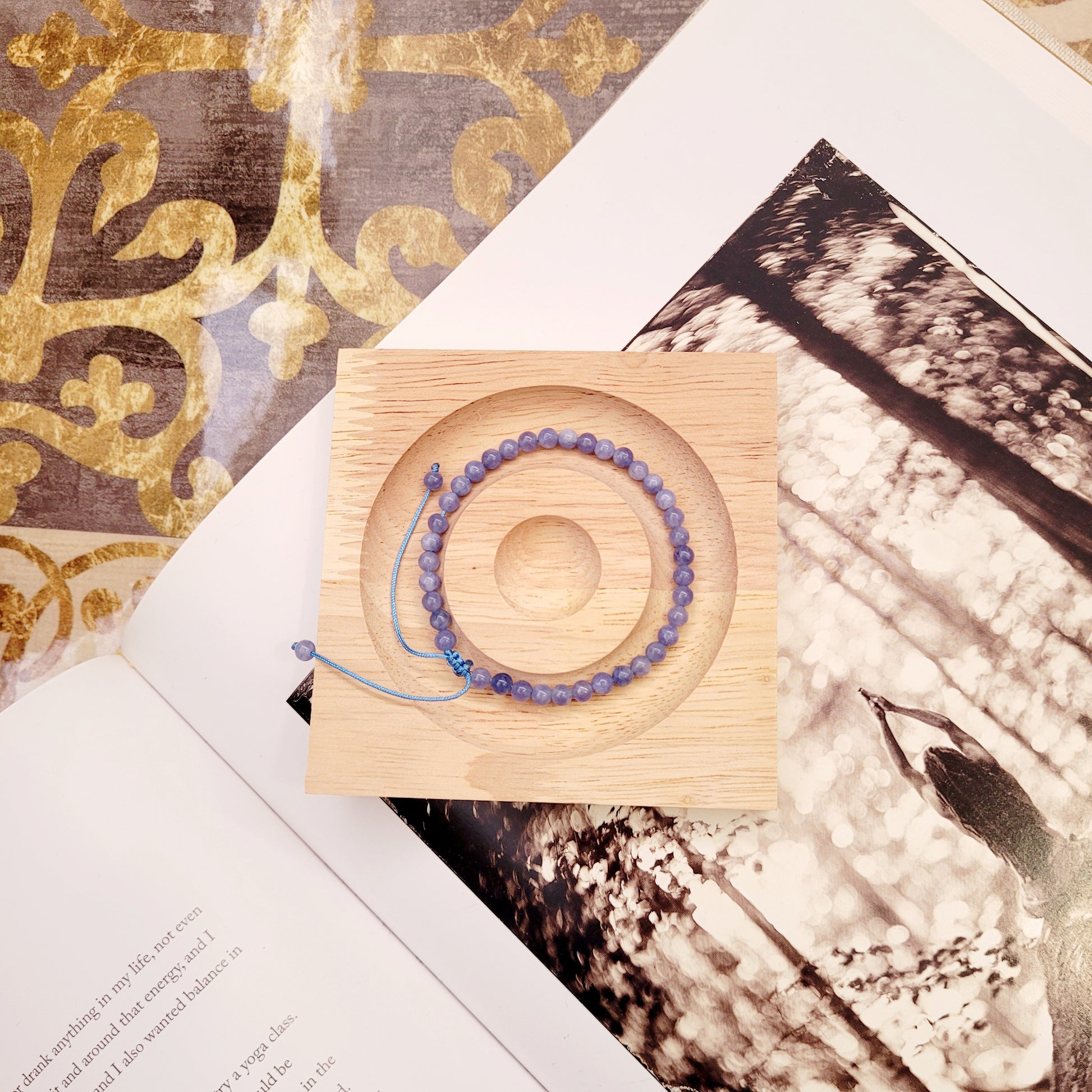 This adjustable bracelet features 4mm angelite stones known for their calming blue hues and soothing energy. Designed for a comfortable fit, it offers both elegance and spiritual balance, perfect for daily wear or layering with other pieces. The high-quality stones provide a subtle yet meaningful accessory that supports tranquility and communication.