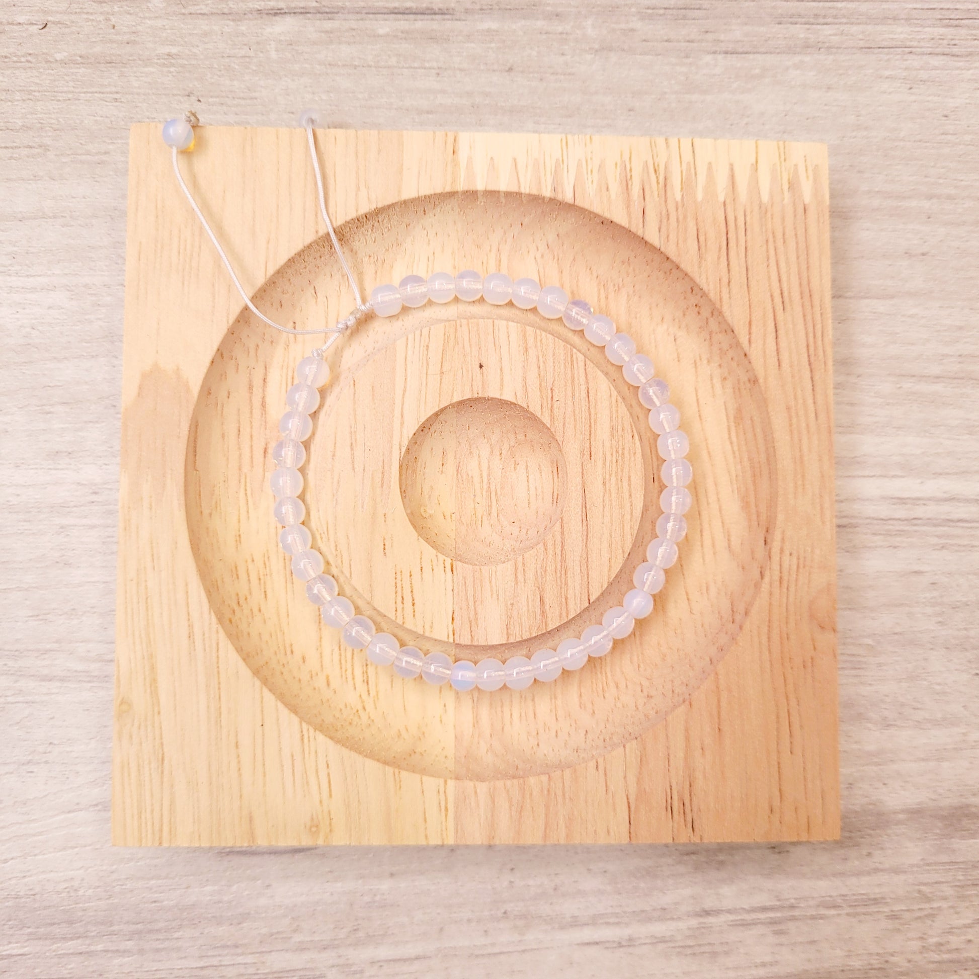 This adjustable 4mm Opalite bracelet offers a subtle yet captivating glow, ideal for those seeking both style and versatility. Crafted with smooth, polished Opalite stones, it provides a comfortable fit that adapts to various wrist sizes. Perfect for layering or wearing alone, this bracelet combines understated elegance with the soothing qualities attributed to Opalite in holistic practices.