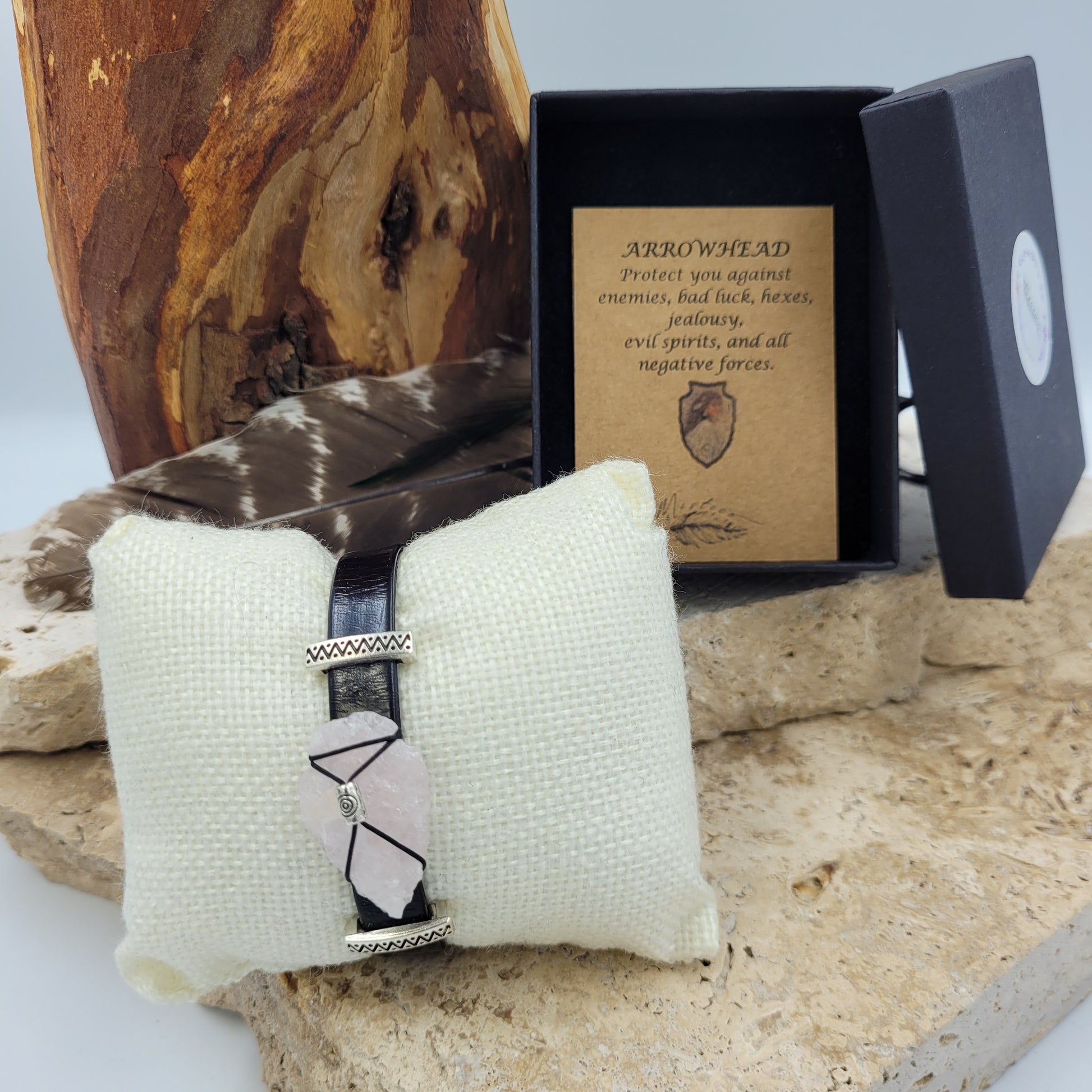 Rose Quartz Leather Arrowhead Bracelet