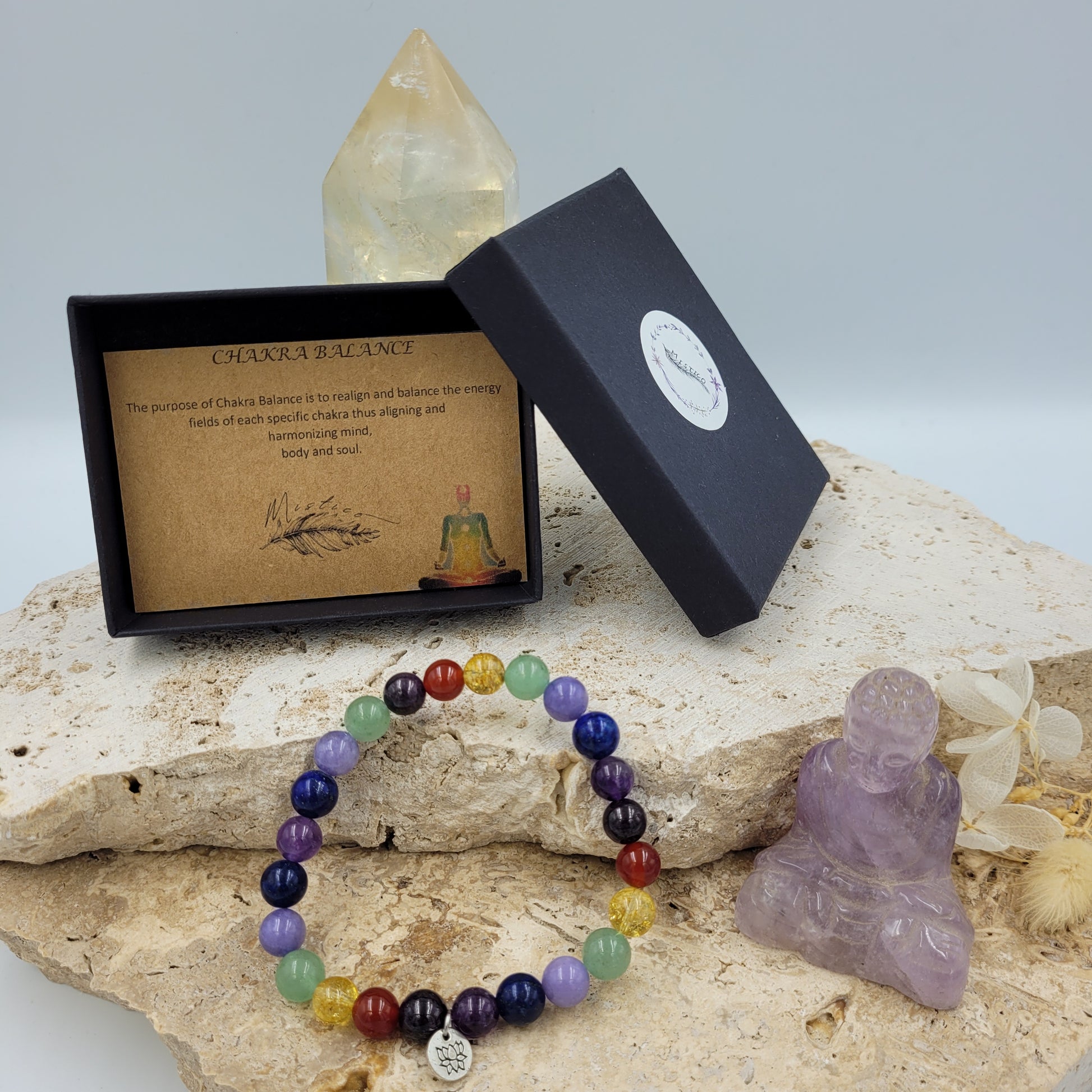 These beautiful Bracelet Chakra Balance are designed to bring balance and harmony to the body's seven chakras. Crafted with crystals of varying colors, they work to realign and balance energy fields, helping to ensure that your mind, body, and soul are in perfect harmony.