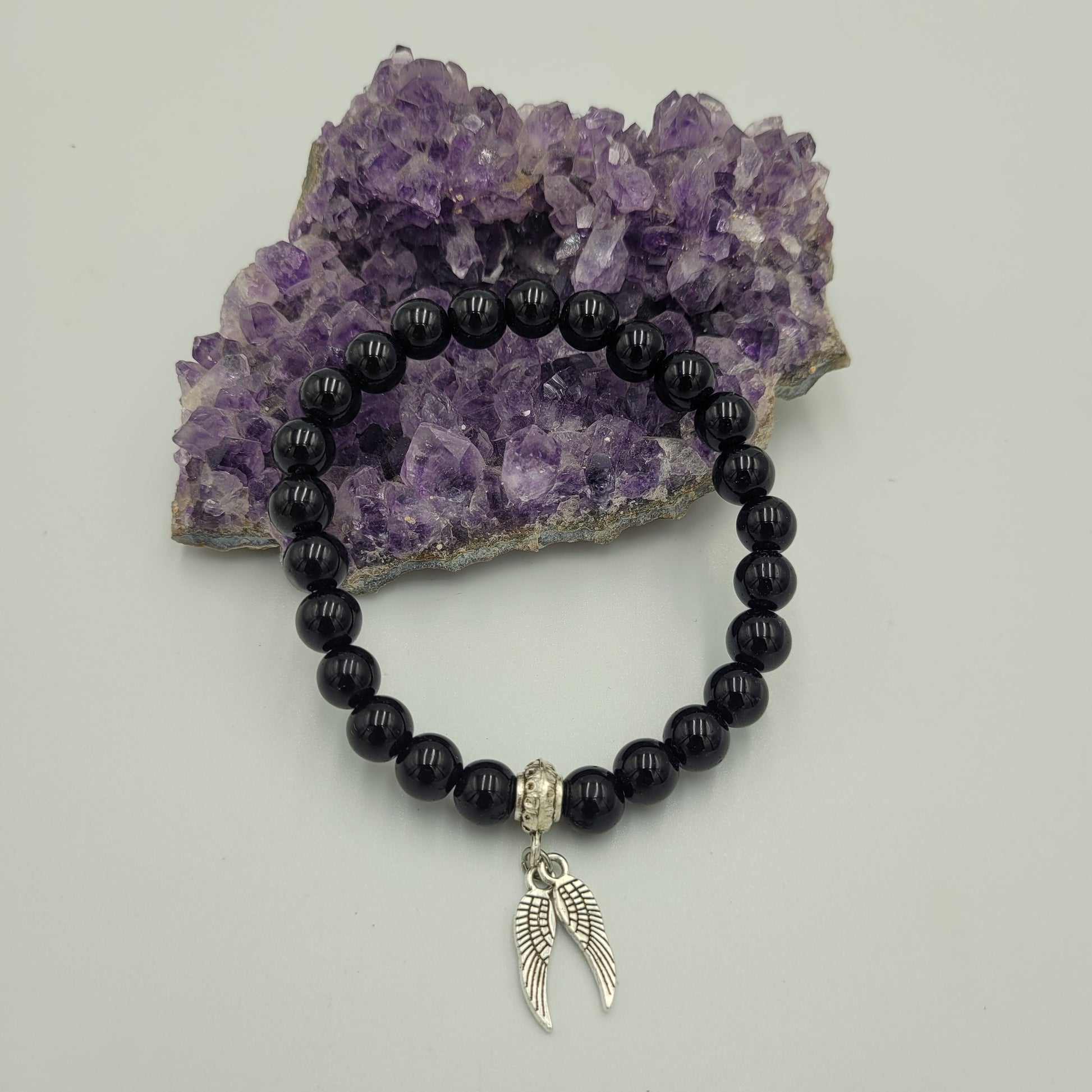 Stay protected with our 8mm Obsidian Wings Bracelet. Crafted with obsidian beads, this elegant bracelet helps stabilize your energies while protecting you from external and internal forces. Add a touch of style to your look while finding peace and balance.