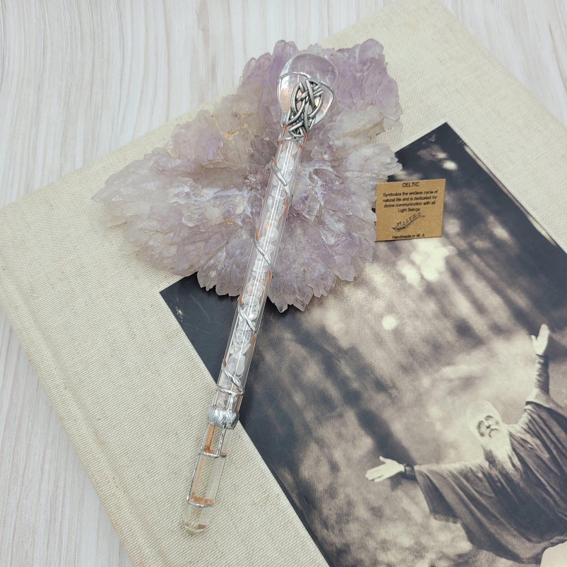 Channel your inner power with the Celtic Wand! Crafted from Clear Quartz, it amplifies your intentions and helps bring your thoughts to life. Tap into the wisdom of the Celtic symbols to deepen your connection with the divine. Reach for strength, balance, and rebirth with this magical tool!