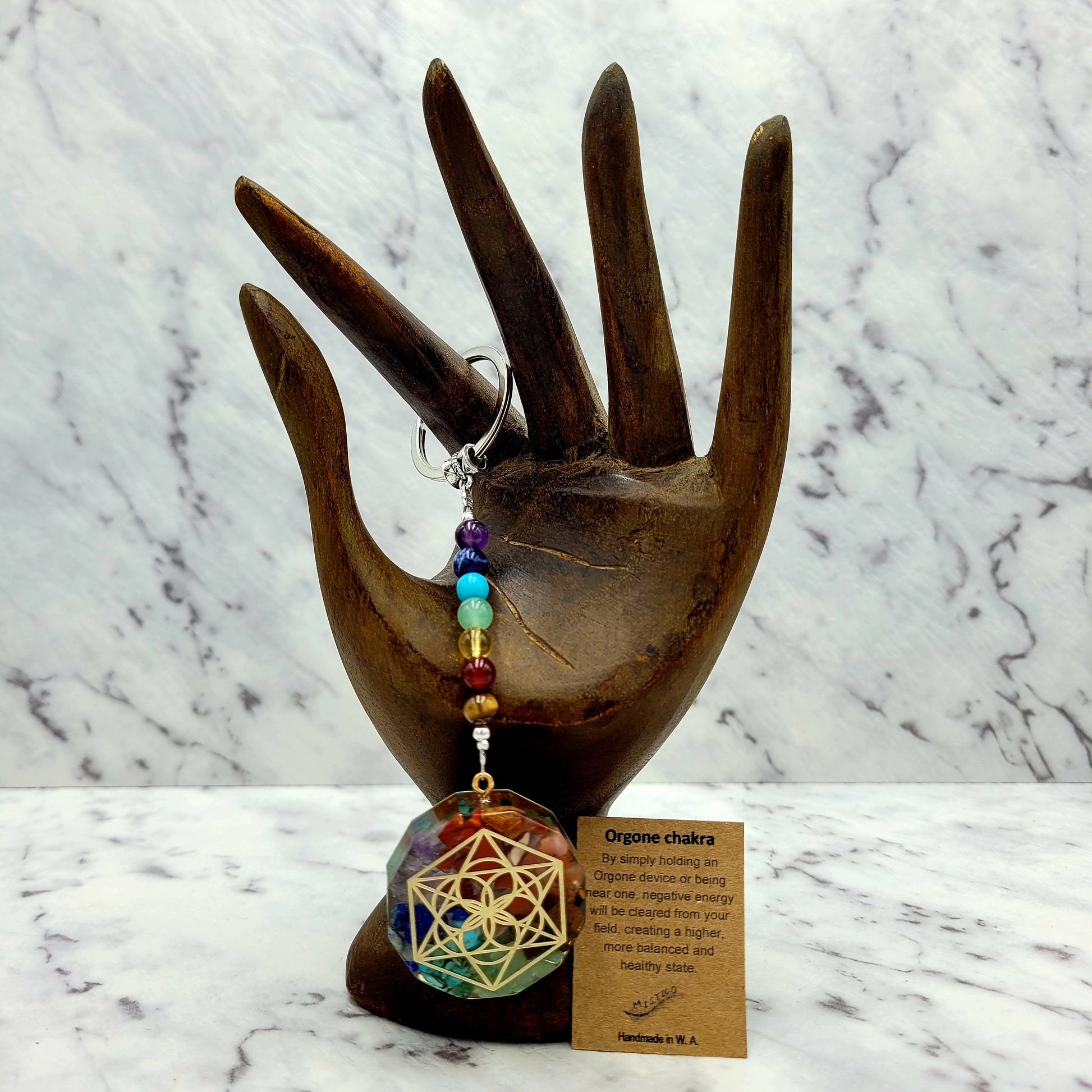 Introducing the Chakras Balance Orgone Keychain, a luxurious and exclusive energy transference device. Combining beautiful resin and metal pieces to form a harmonious balance of energy, this finely crafted orgonite keychain is the perfect way to ensure your energy is transfigured into a positive and harmonious form. Enjoy a balanced and harmonious lifestyle with this elegantly crafted Chakras Balance Orgone Keychain.