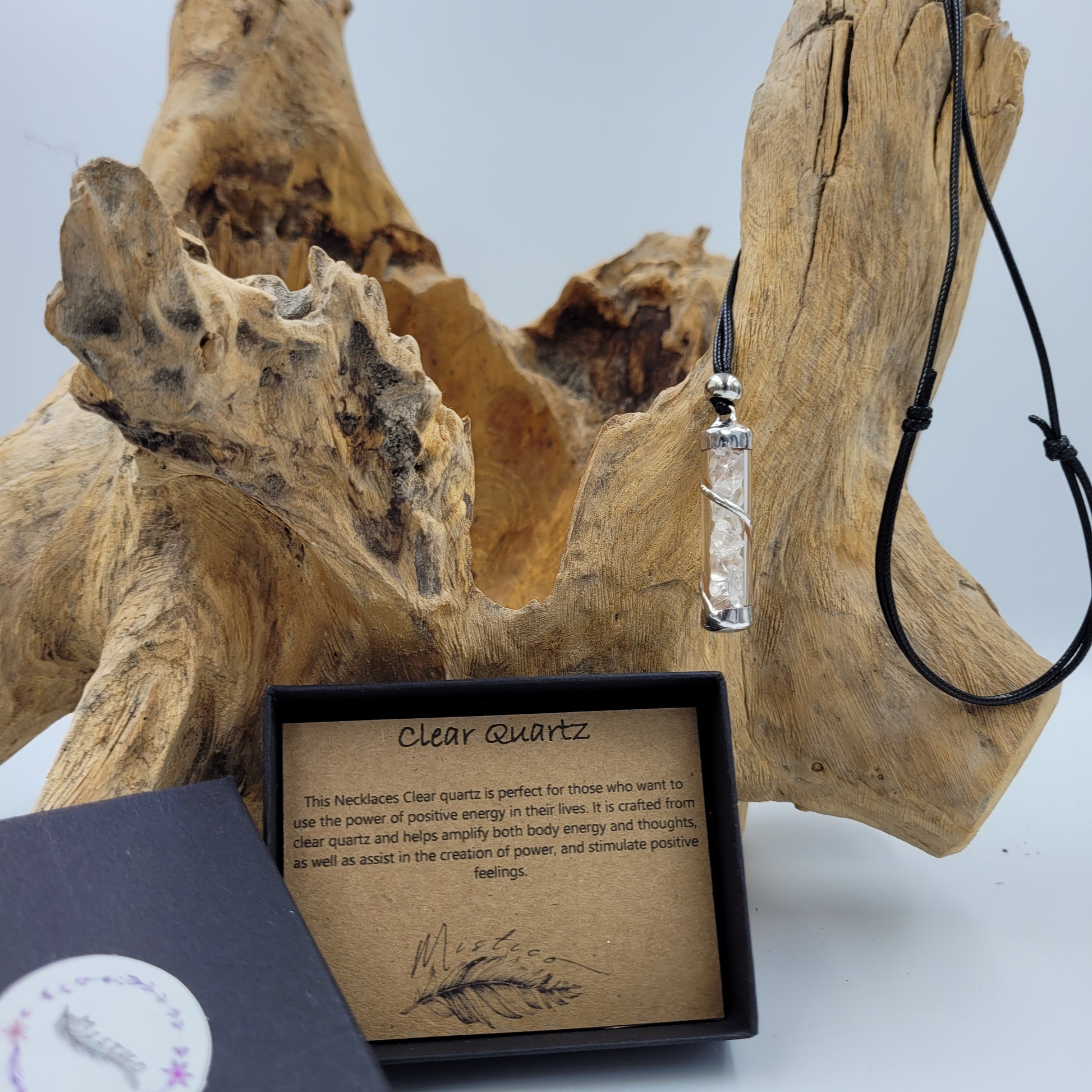 Our Crystal Filled Tube Necklaces are a beautiful piece that you can wear to promote healing and protection wherever you go. With its beautiful crystals encased in a tube necklace pendant, it is a powerful accessory for those looking for daily support from their chosen stone. Put on this necklace and feel surrounded by calming, protective energies.