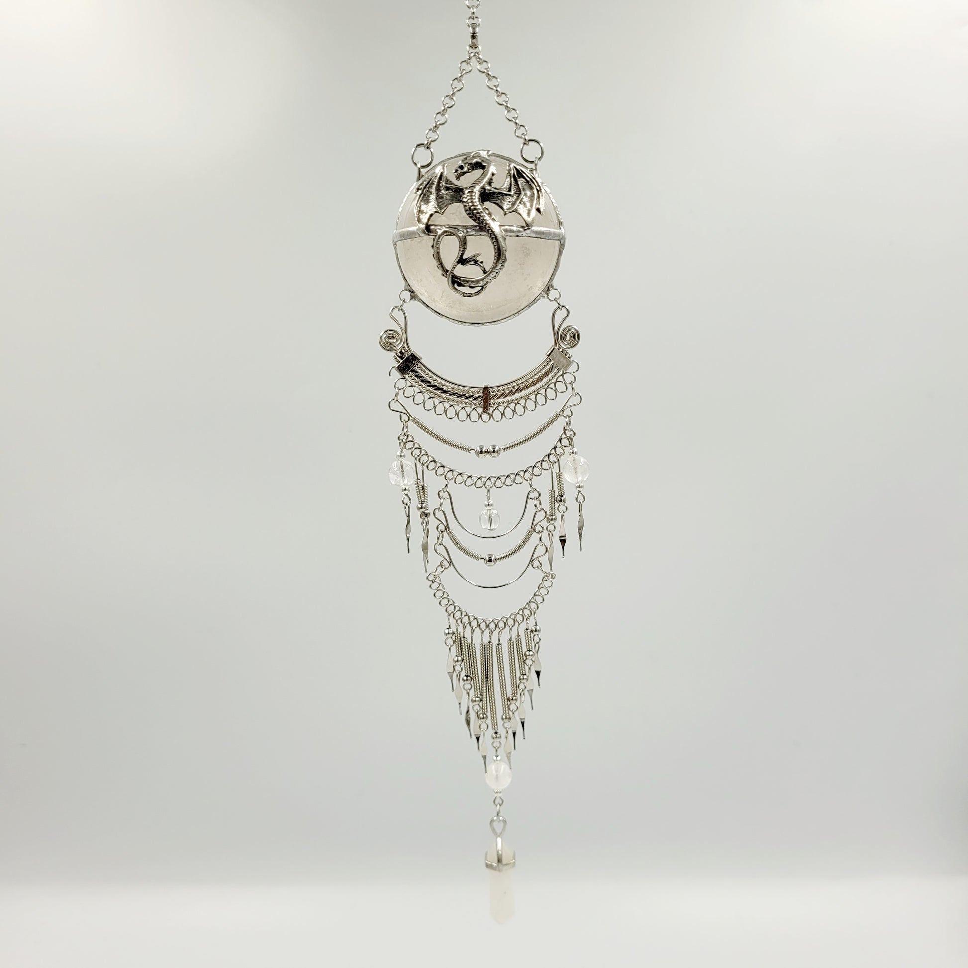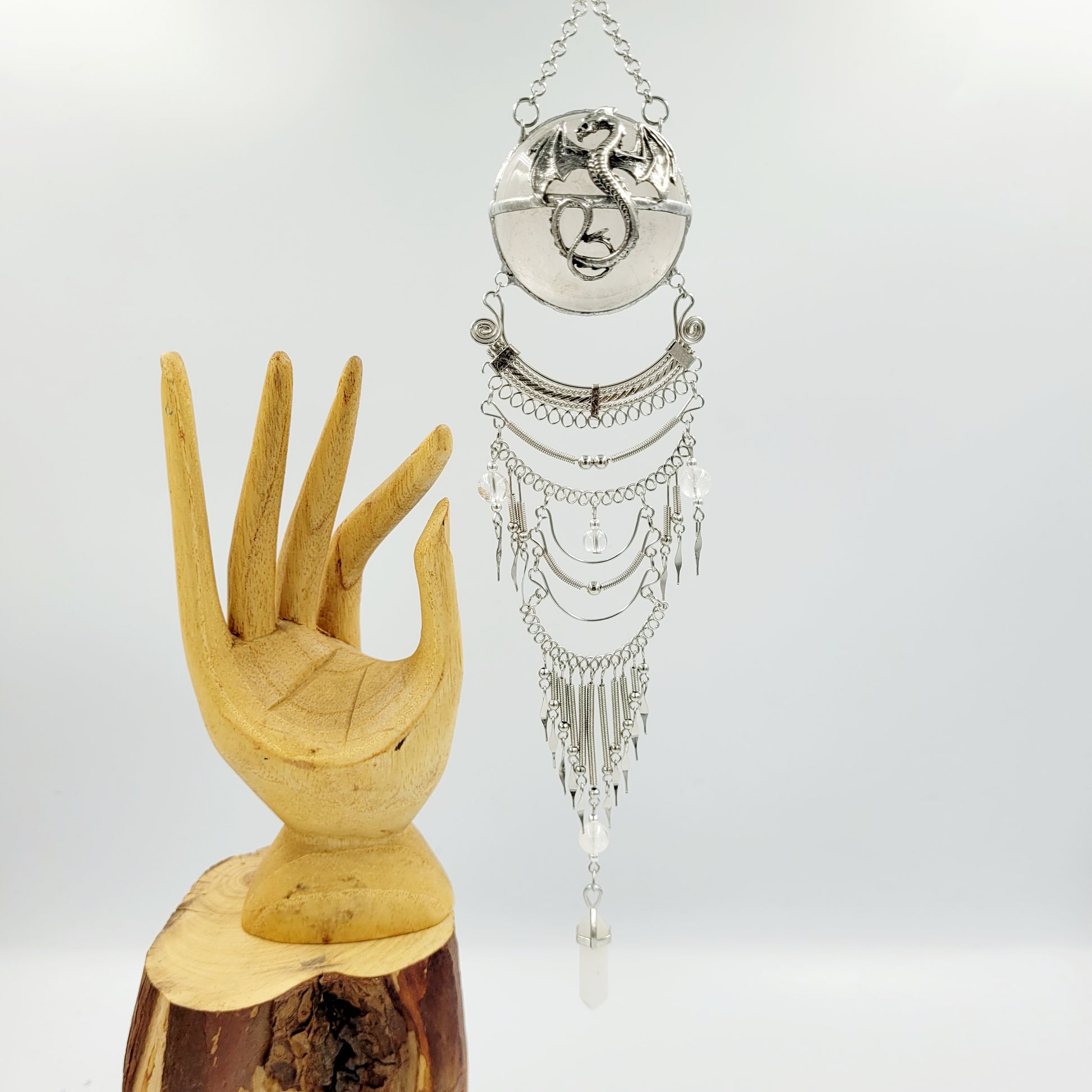 Clear Quartz Hanging Sphere / Dragon