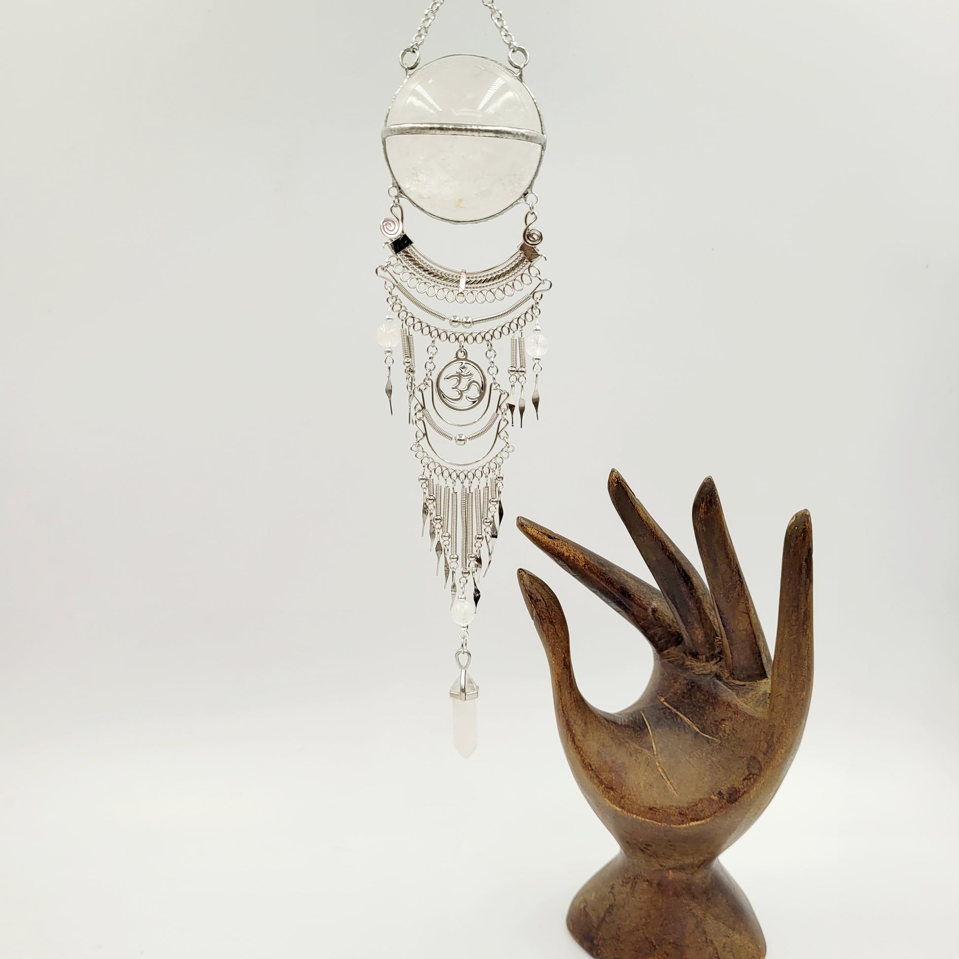This Clear Quartz Hanging Sphere is a powerful tool to increase the positivity of your environment. It can help amplify both body energy and thoughts, and assist in the creation of power. With its unique energy properties, this sphere is sure to bring a refreshing energy into your home or workspace.
