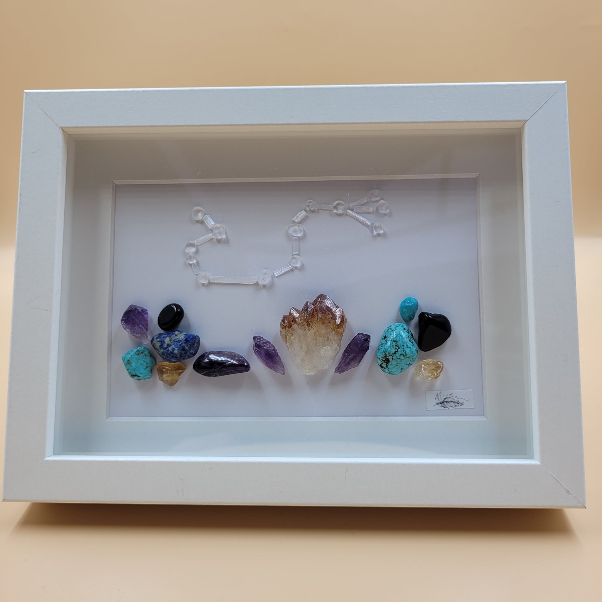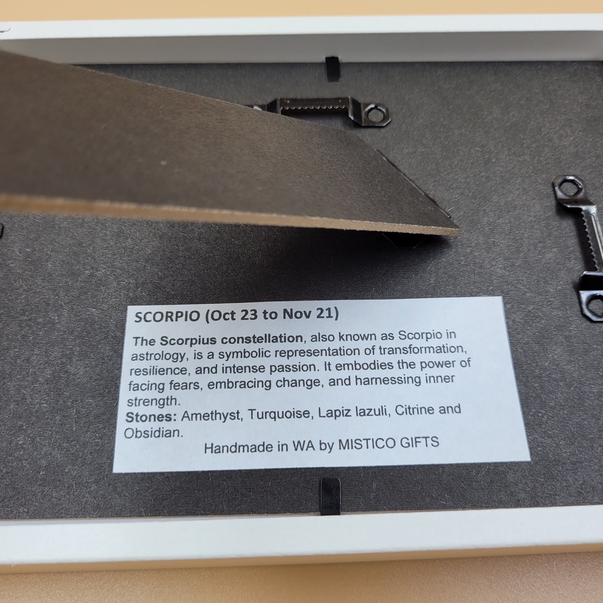 Meticulously crafted to represent the Scorpius constellation, this Scorpio picture embodies transformation and resilience. Featuring premium stones including Amethyst, Turquoise, Lapis Lazuli, Citrine, and Obsidian, it symbolizes the power to face fears and embrace change. Each element is precisely positioned to capture the celestial pattern that astrology associates with intense passion and inner strength.